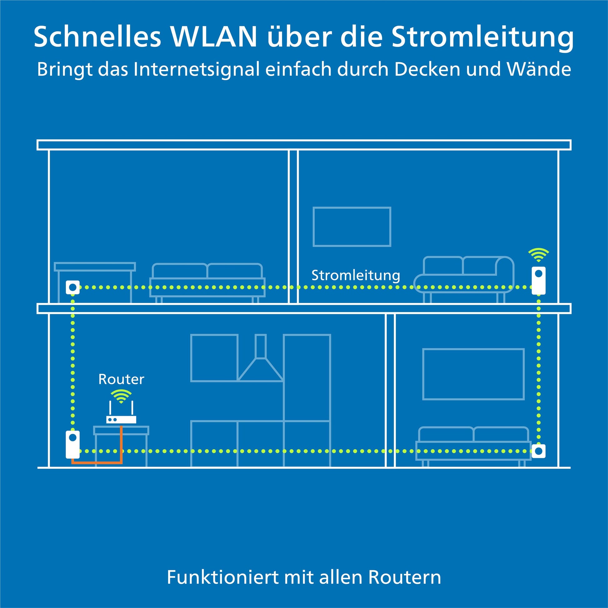 Während ein Repeater das oft schon schwache WLAN-Signal weiterleitet, nutzt dieser Adapter die hausinterne Stromleitung (Powerline), um das Internetsignal stabil und verlustfrei durch dicke Wände und Decken zu transportieren. Das Mesh-WLAN sorgt dabei für ein nahtloses Netz mit nur einem Namen, sodass Ihre Geräte sich immer automatisch mit dem stärksten Signal verbinden.