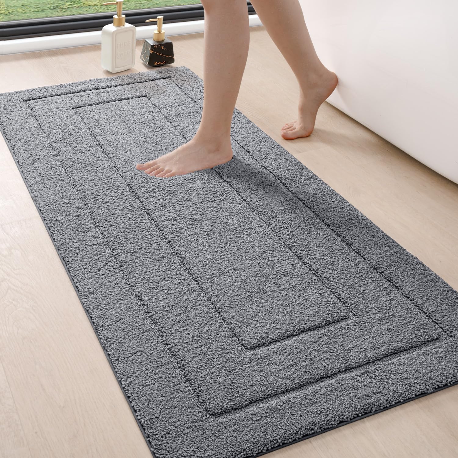 DEXI Badteppich rutschfest für Badezimmer – Grau, 61x152 cm