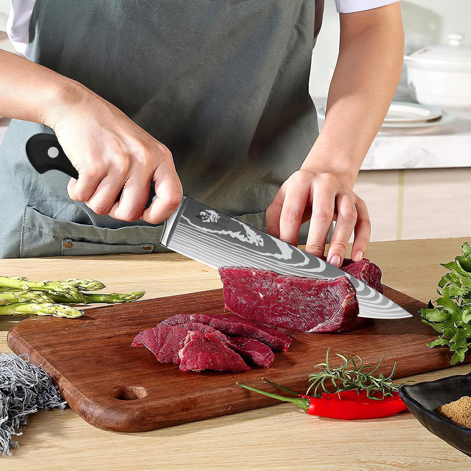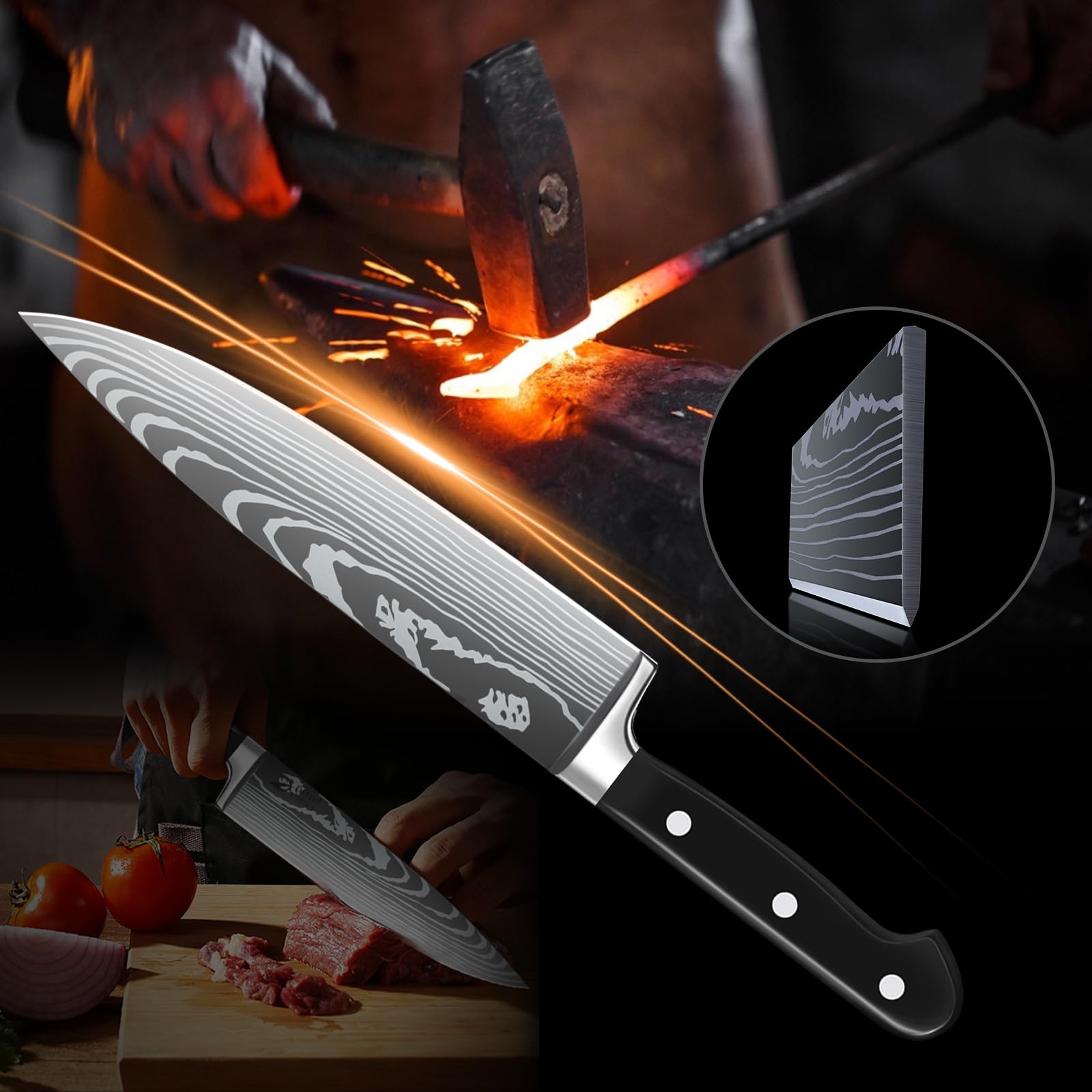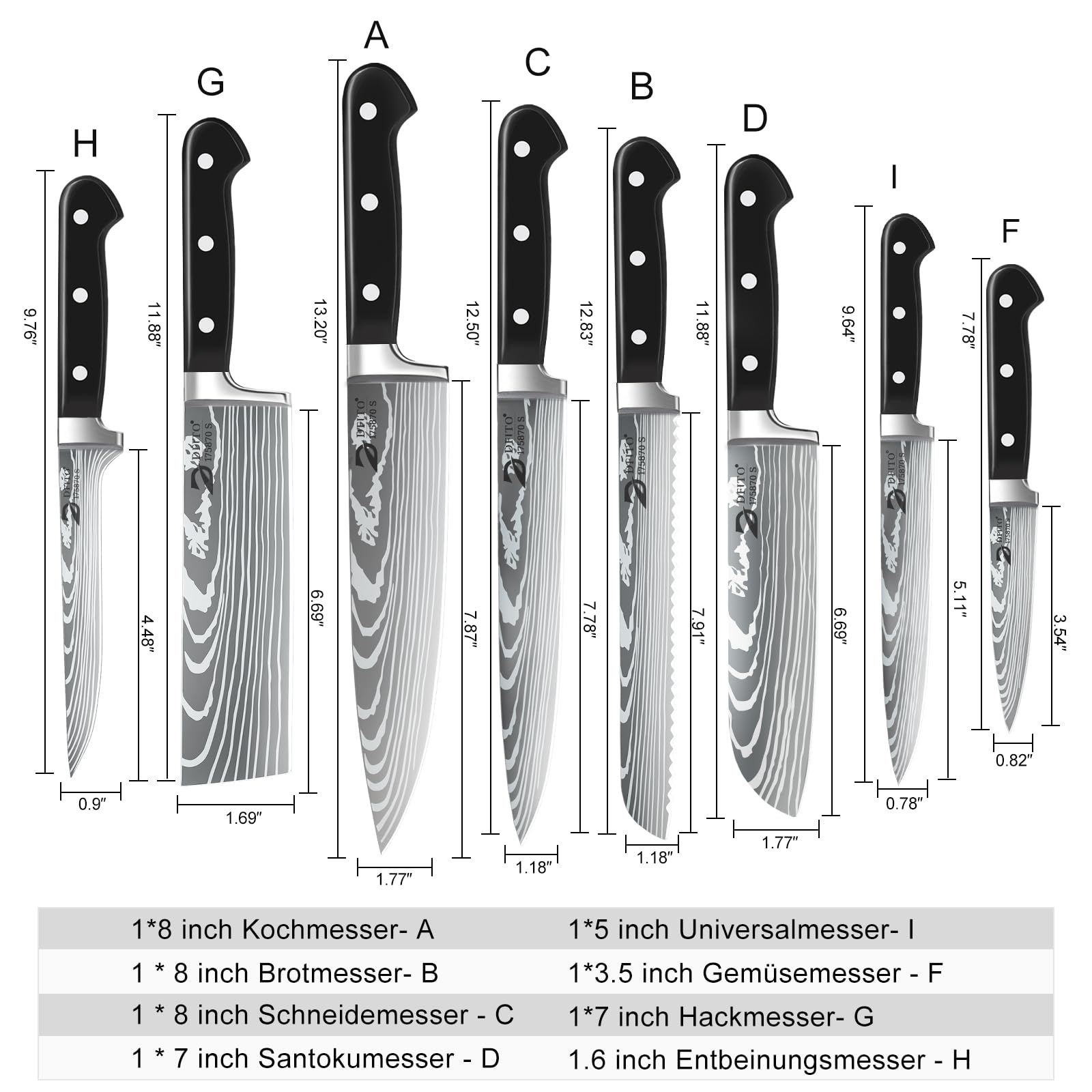 - Komplettes 8-teiliges Set: Enthält eine vielseitige Auswahl an Kochmessern für jede Aufgabe in der Küche.
