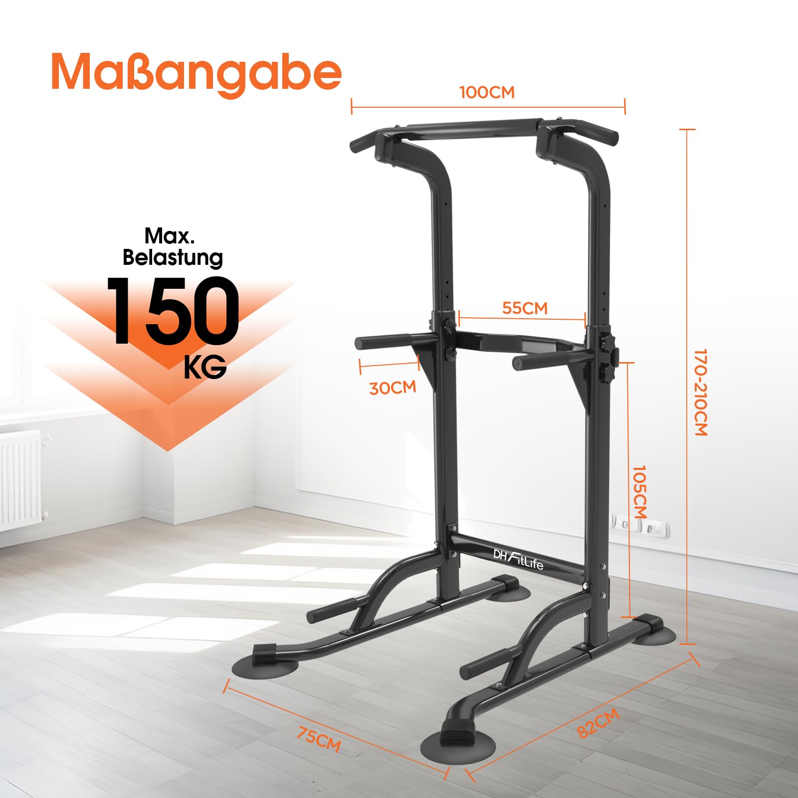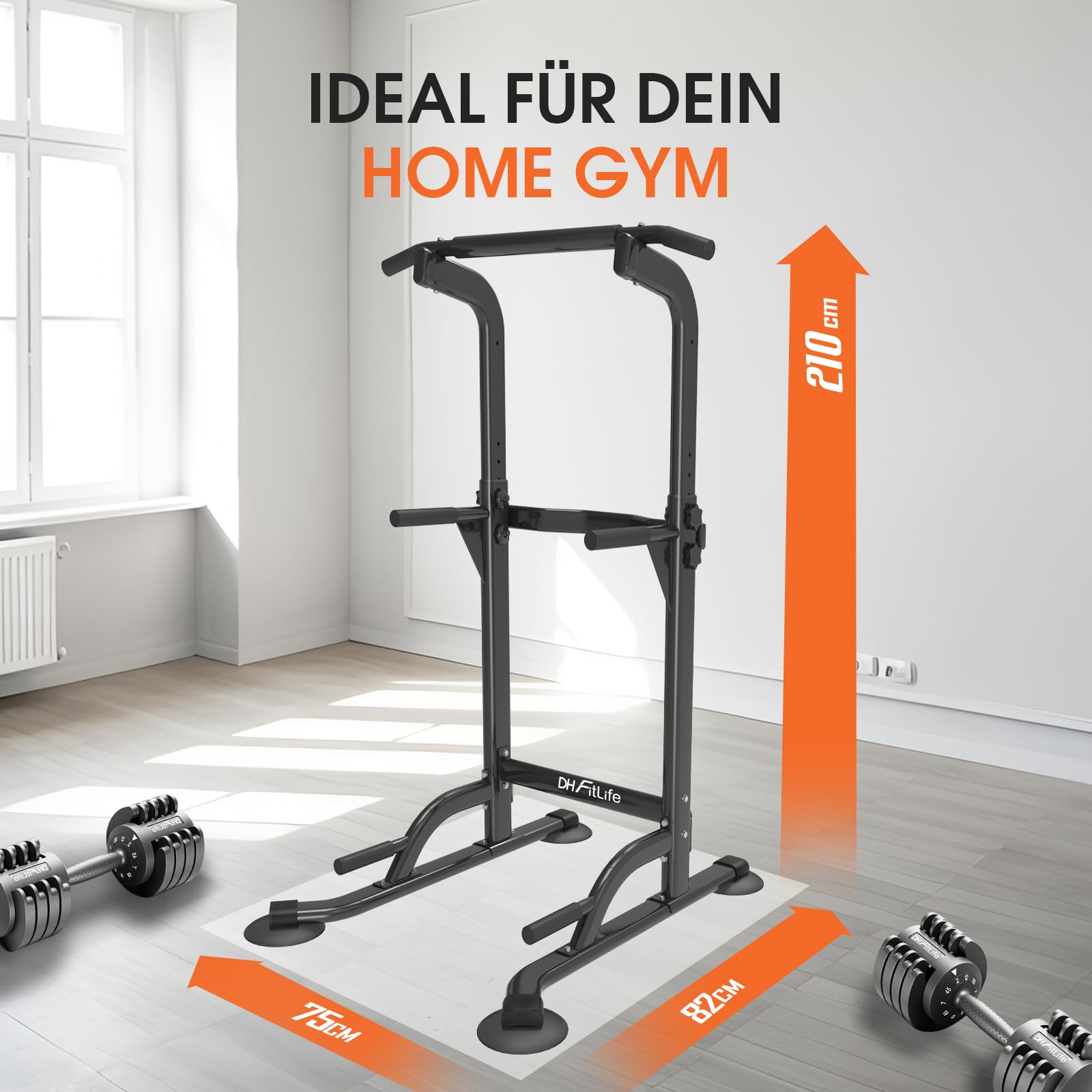 DH FitLife Power Tower Dip Station Klimmzugstange Freistehend