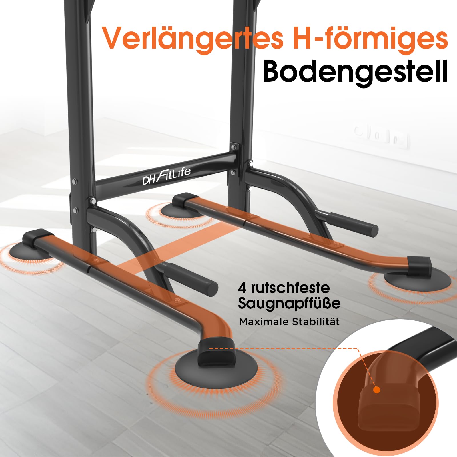 - Sicherer Stand: Das verlängerte, H-förmige Bodengestell mit vier rutschfesten Saugnapffüssen garantiert höchste Stabilität und schützt Ihren Boden.