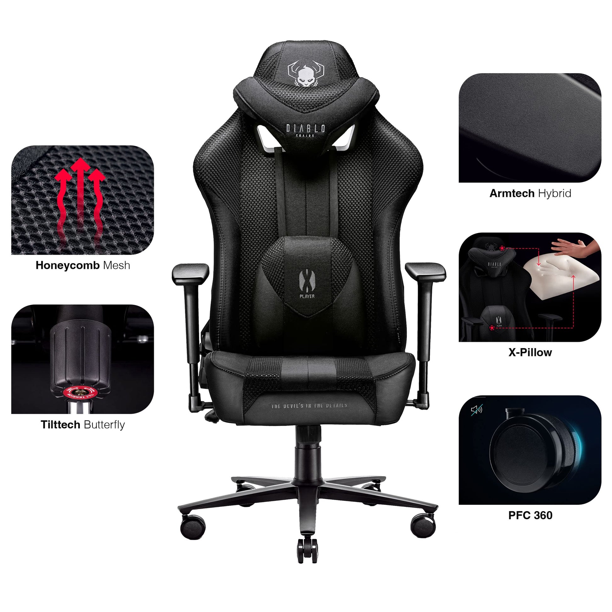Der Diablo X-Player 2.0 Gaming Stuhl in der King Grösse (XL) wurde speziell für Gamer entwickelt, die höchsten Wert auf Komfort, Ergonomie und eine beeindruckende Statur legen. Erleben Sie ein Sitzerlebnis, das Sie optimal bei jeder Herausforderung unterstützt.