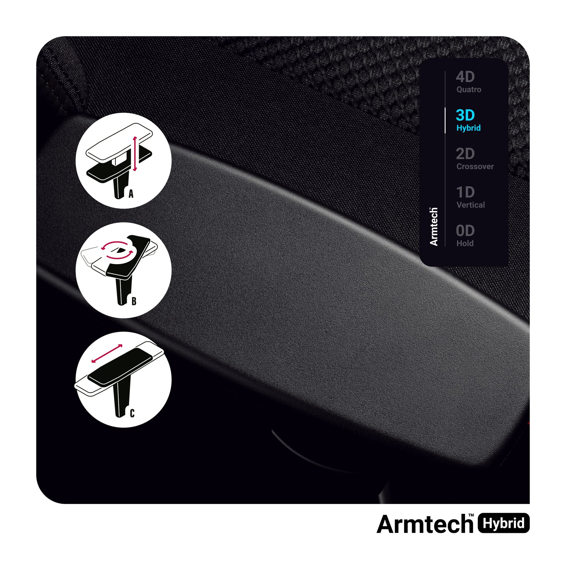 - 3D-Armlehnen: In drei Richtungen verstellbar für eine perfekte Arm- und Handgelenkauflage.