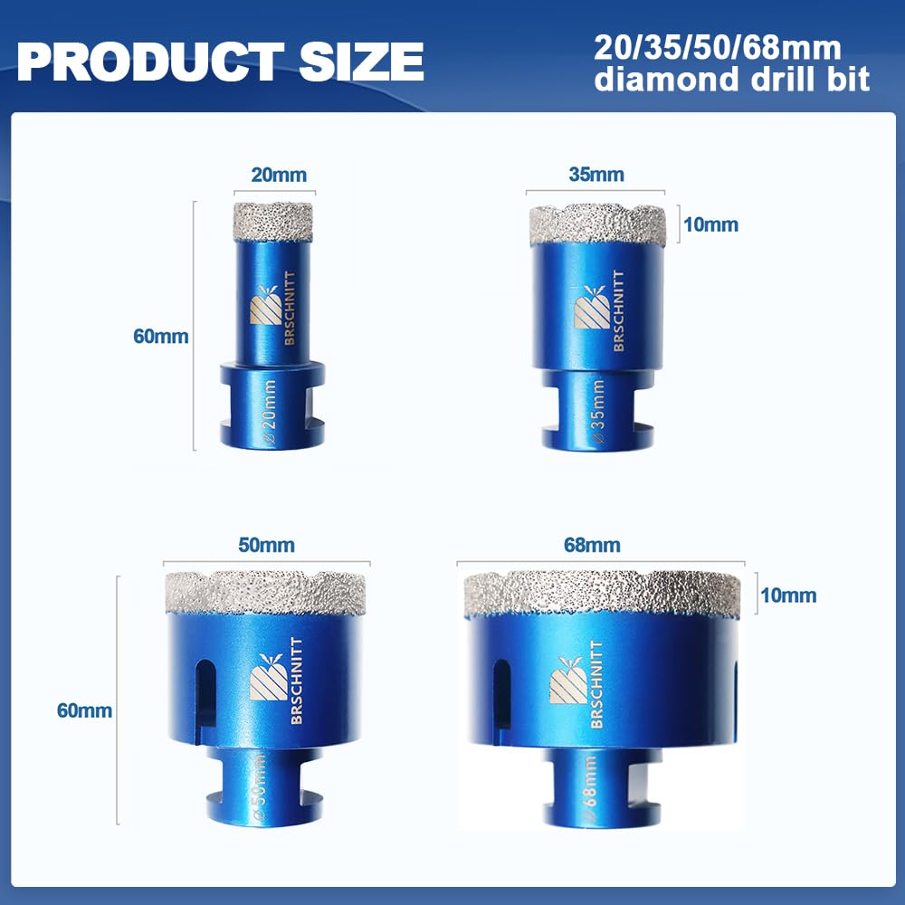 Diamantbohrer Set Fliesen Granit Marmor – 20/35/50/68mm Trockenbohren