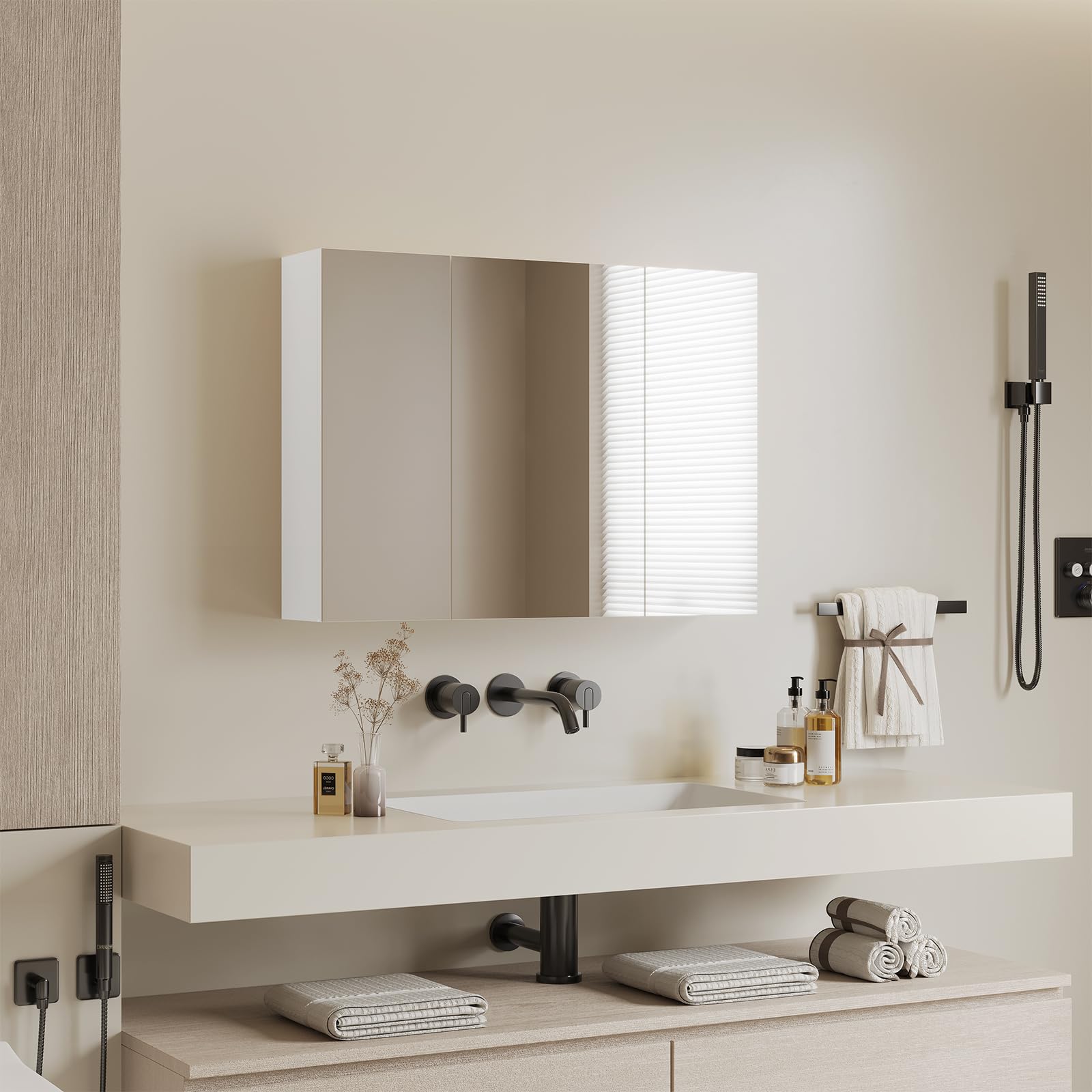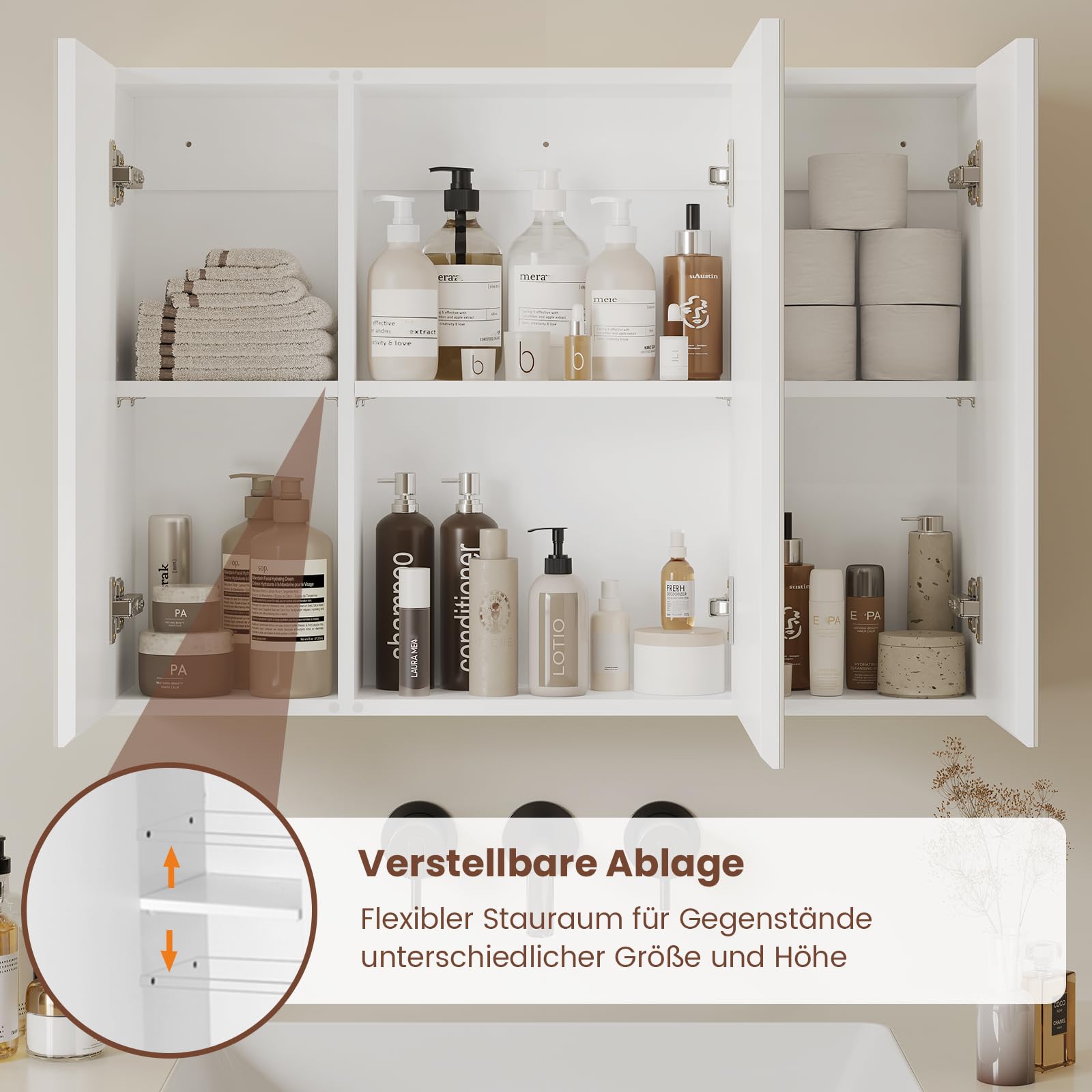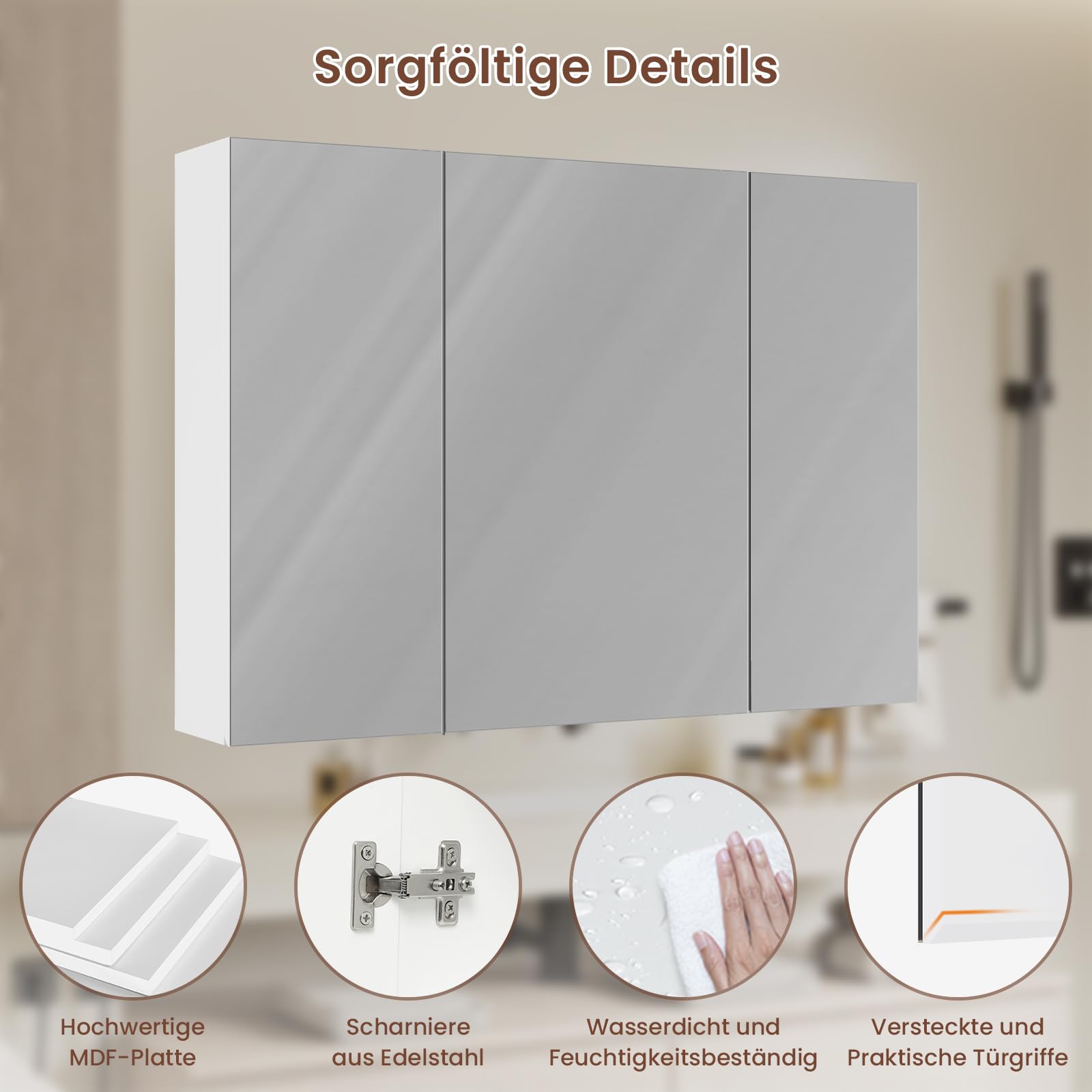 DICTAC Spiegelschrank Badezimmer 80x60cm 3 Türen – Weiss