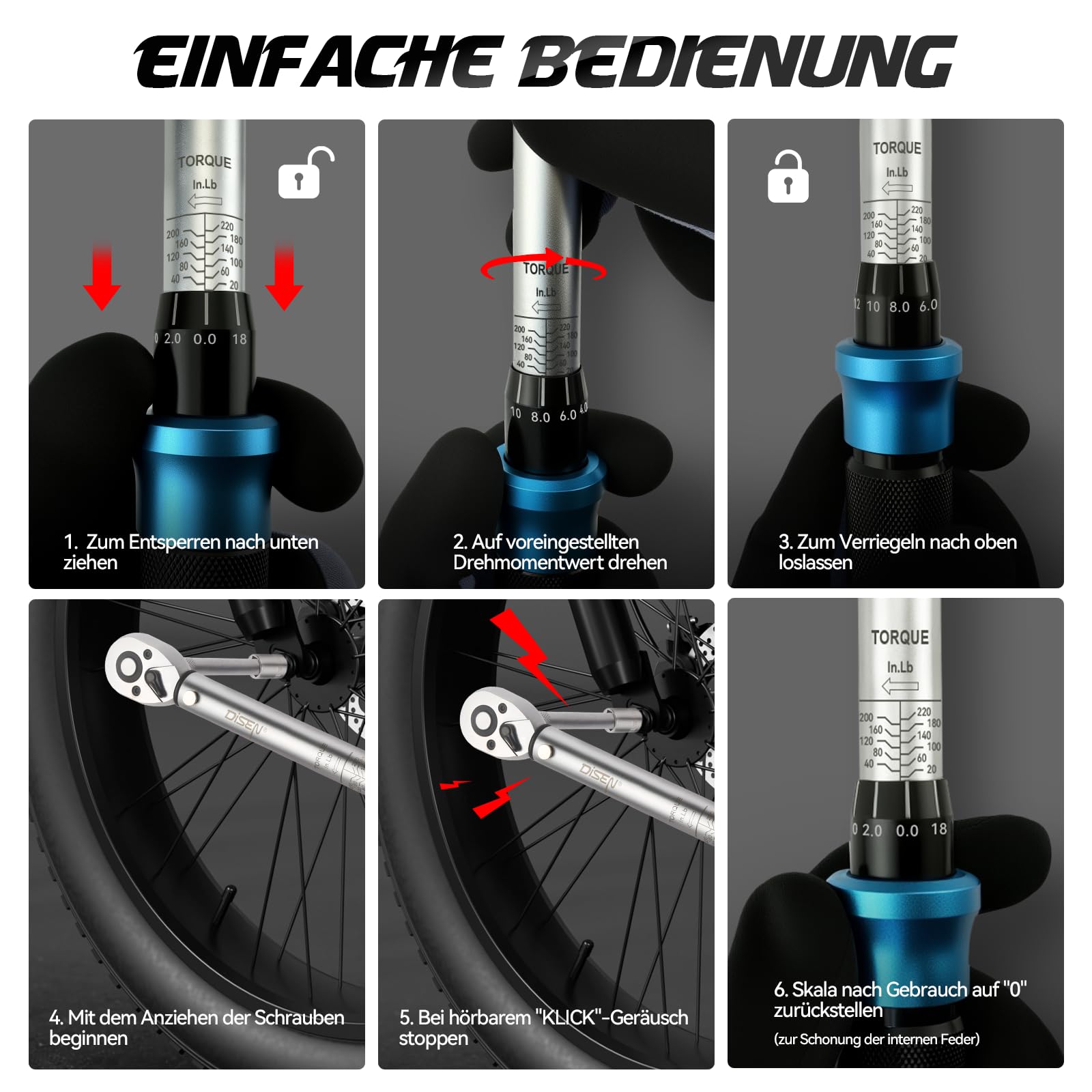 Dieses Set ist extrem vielseitig und deckt mit drei Grössen (1/4", 3/8", 1/2") und Messbereichen von 2 Nm bis 220 Nm fast alle Schraubarbeiten ab. Es eignet sich perfekt für feine Justierungen am Fahrrad, Wartungsarbeiten an Motorrad und Auto (z.B. Radwechsel) sowie anspruchsvolle Aufgaben in der Werkstatt.