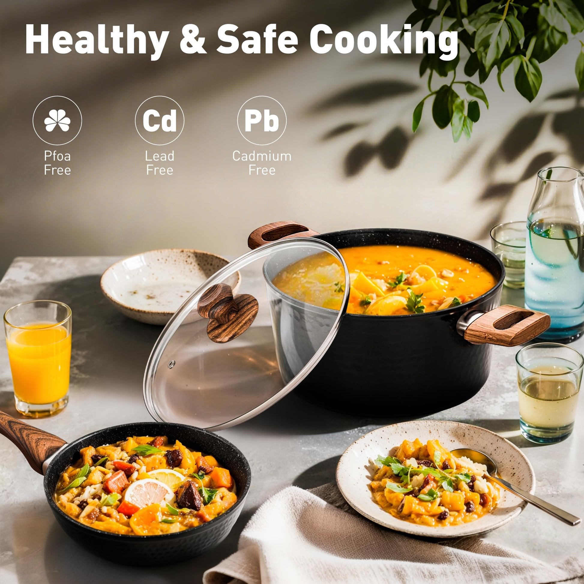 Mit diesem 12-teiligen Kochgeschirr-Set bringen Sie professionelle Qualität und Vielseitigkeit in Ihre Küche. Es ist der ideale Partner für alle, die Wert auf gesundes und unkompliziertes Kochen legen.