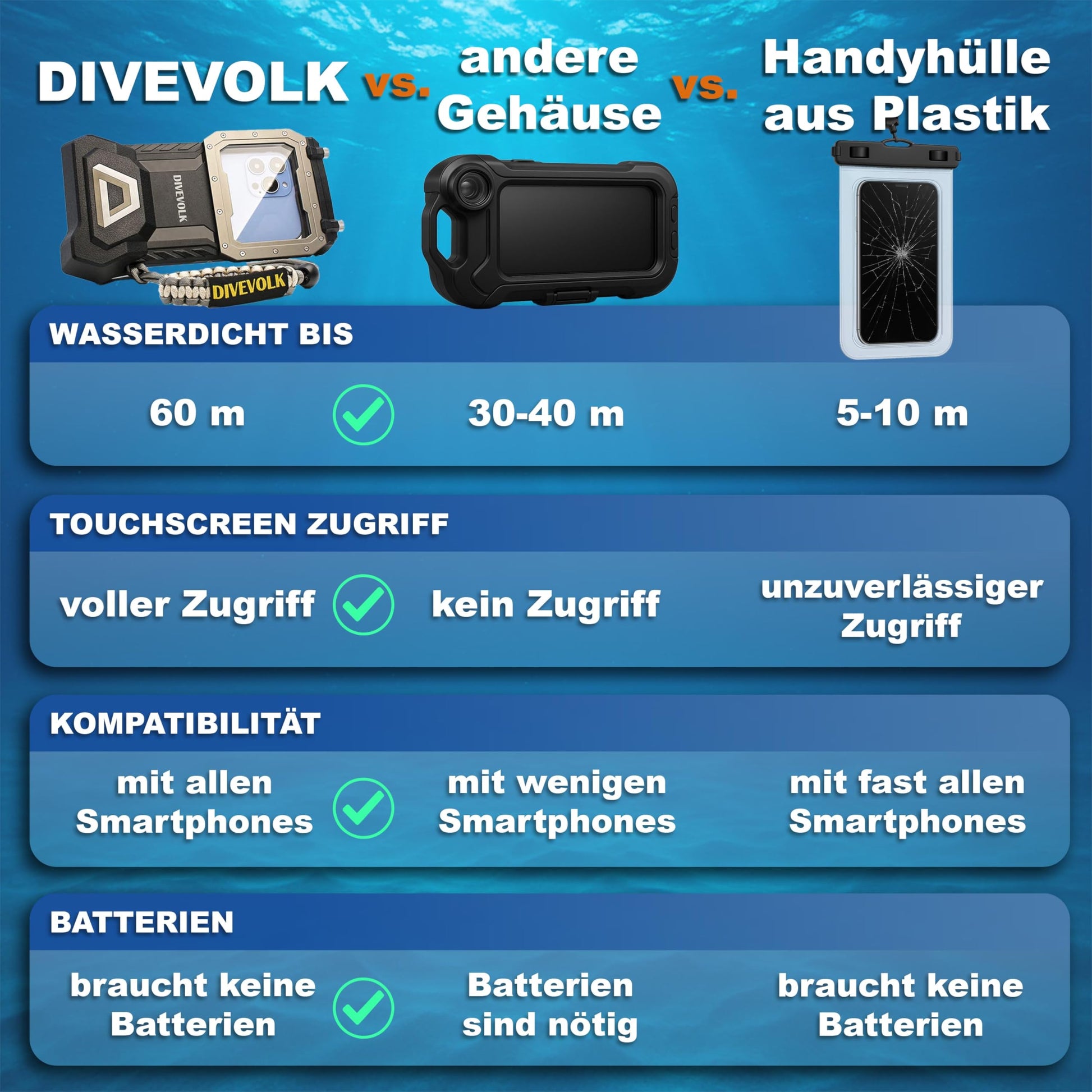 - Wasserdicht bis 60 Meter: Ein robuster und zuverlässiger Schutz, der Ihr Smartphone auch bei tieferen Tauchgängen sicher bewahrt.