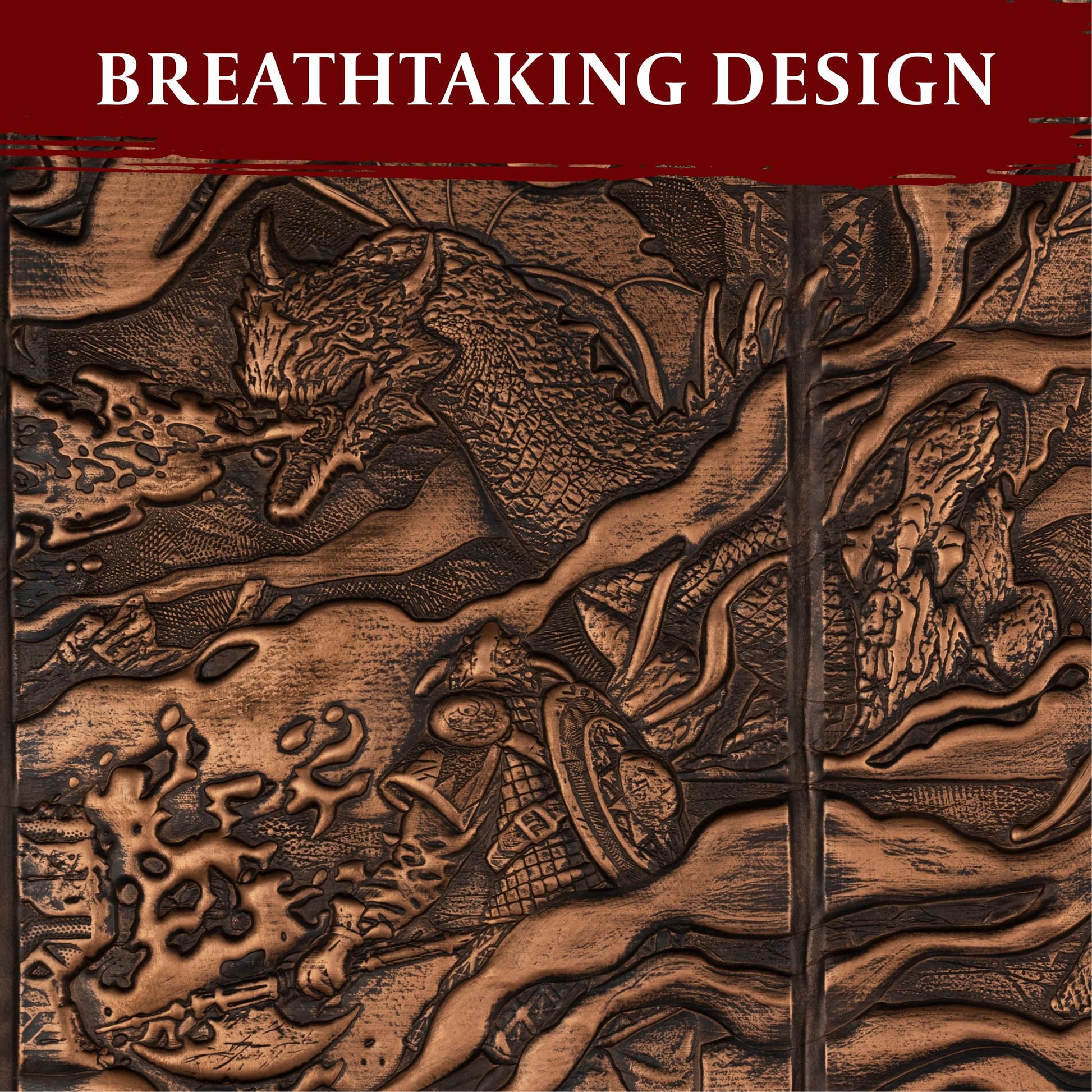 - Faszinierendes 3D-Design: Das Kunstleder ist mit einer detailreichen Szene geprägt, die einen epischen Kampf zwischen Abenteurern und einem Drachen zeigt und sofort für eine immersive Spielatmosphäre sorgt.