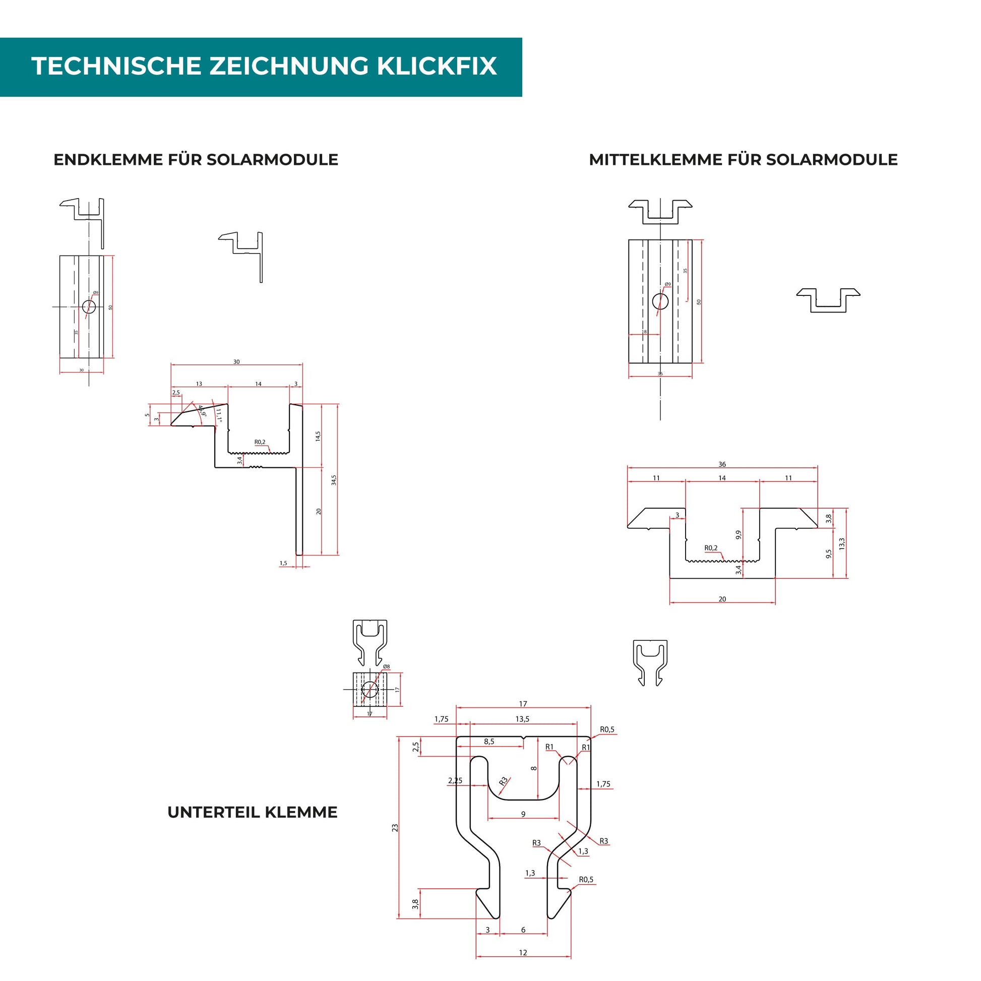 - Hohe Kompatibilität: Eignet sich für nahezu alle handelsüblichen Montageschienen und ist somit die ideale Wahl für diverse Flach- und Schrägdach-Installationen.