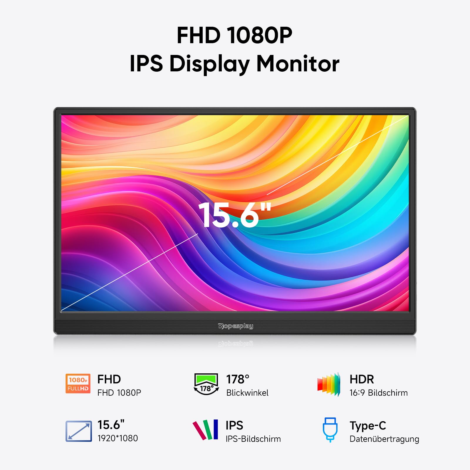 Dopesplay 2025 Tragbarer Monitor 15,6 Zoll FHD IPS
