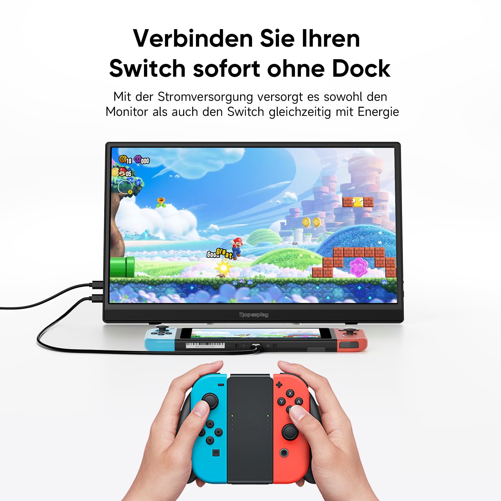 Erweitern Sie Ihren digitalen Arbeitsplatz, wo immer Sie sind. Dieser mobile Monitor von Dopesplay ist die perfekte Lösung, um die Anzeigefläche Ihres Laptops oder anderer Geräte unkompliziert und in exzellenter Qualität zu vergrössern.