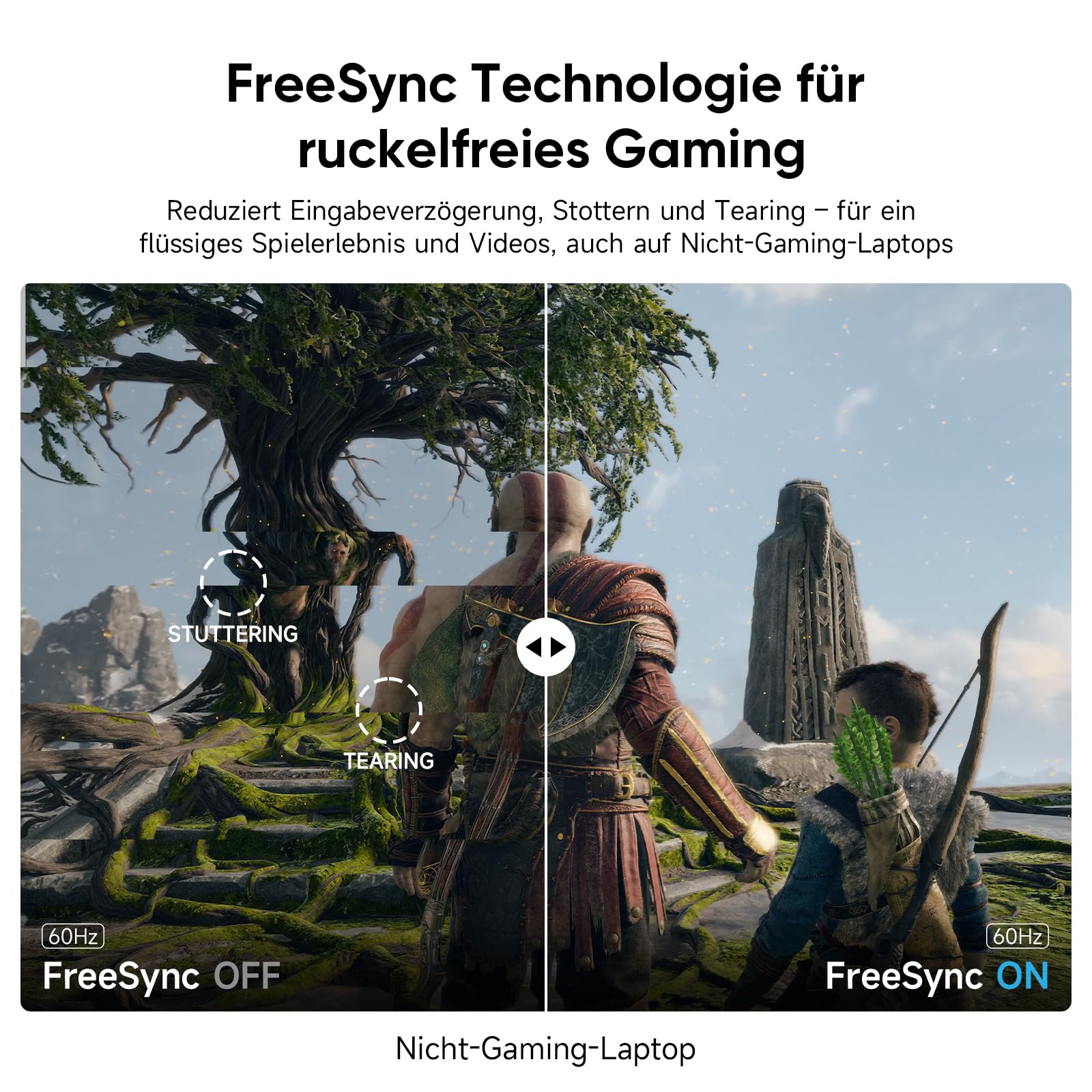 - Flüssiges Gameplay: Die FreeSync-Technologie synchronisiert die Bildwiederholrate und reduziert Ruckeln sowie Tearing – für ein nahtloses Erlebnis bei Spielen und Videos.