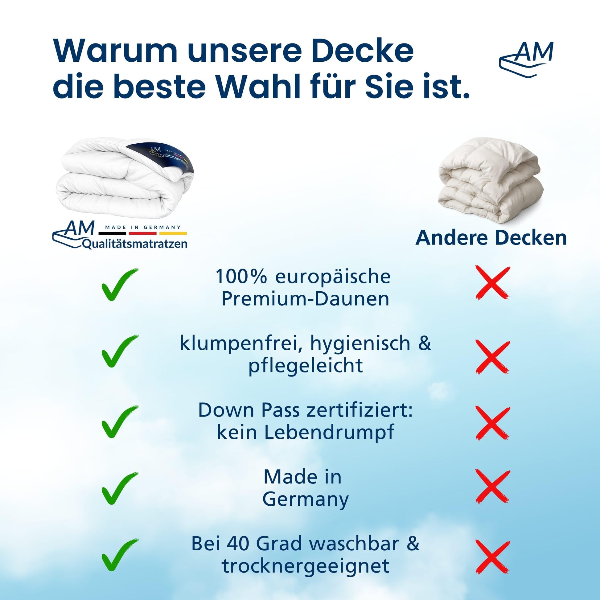 - Füllung: 100% reine europäische Daunen der Klasse 1 (garantiert kein Lebendrupf)