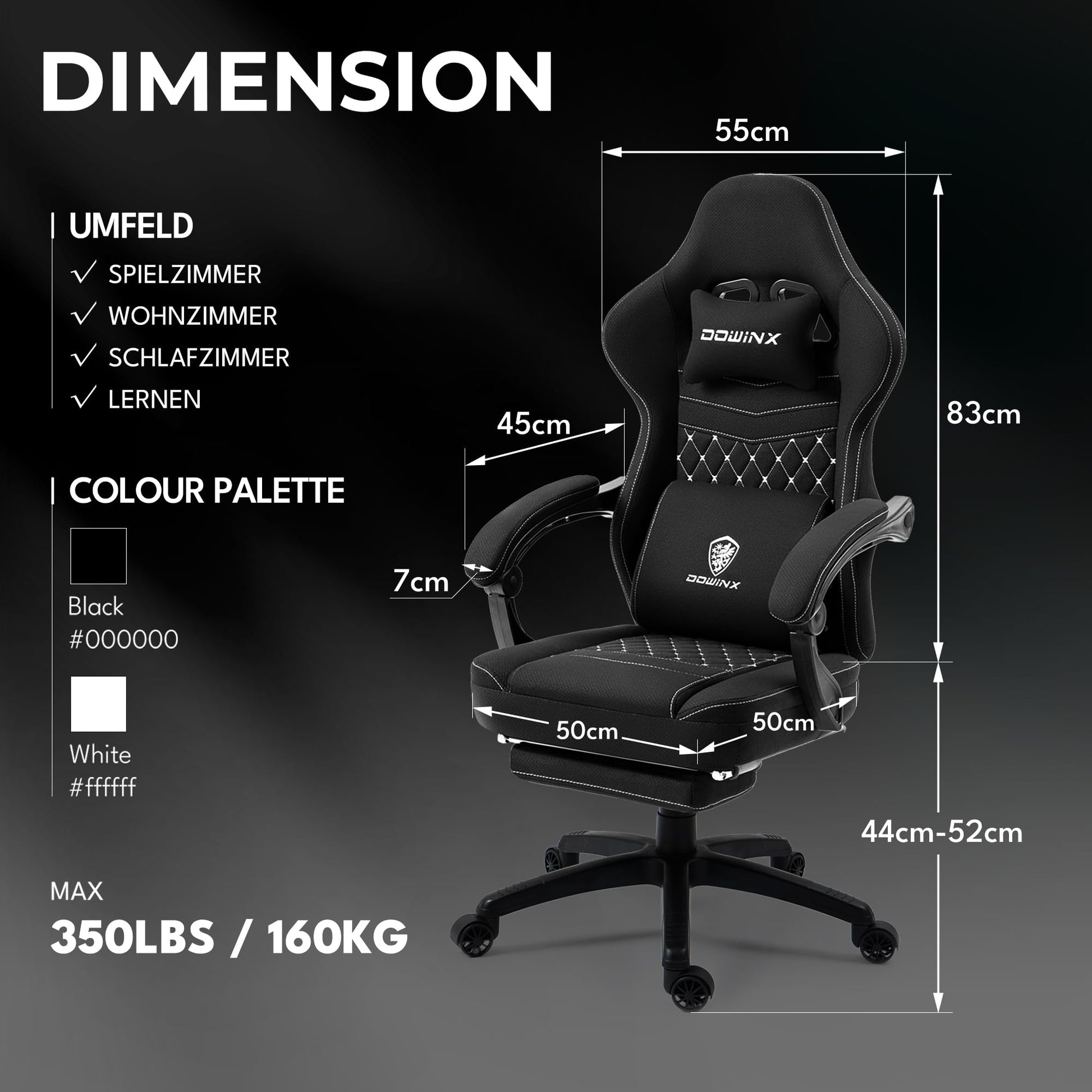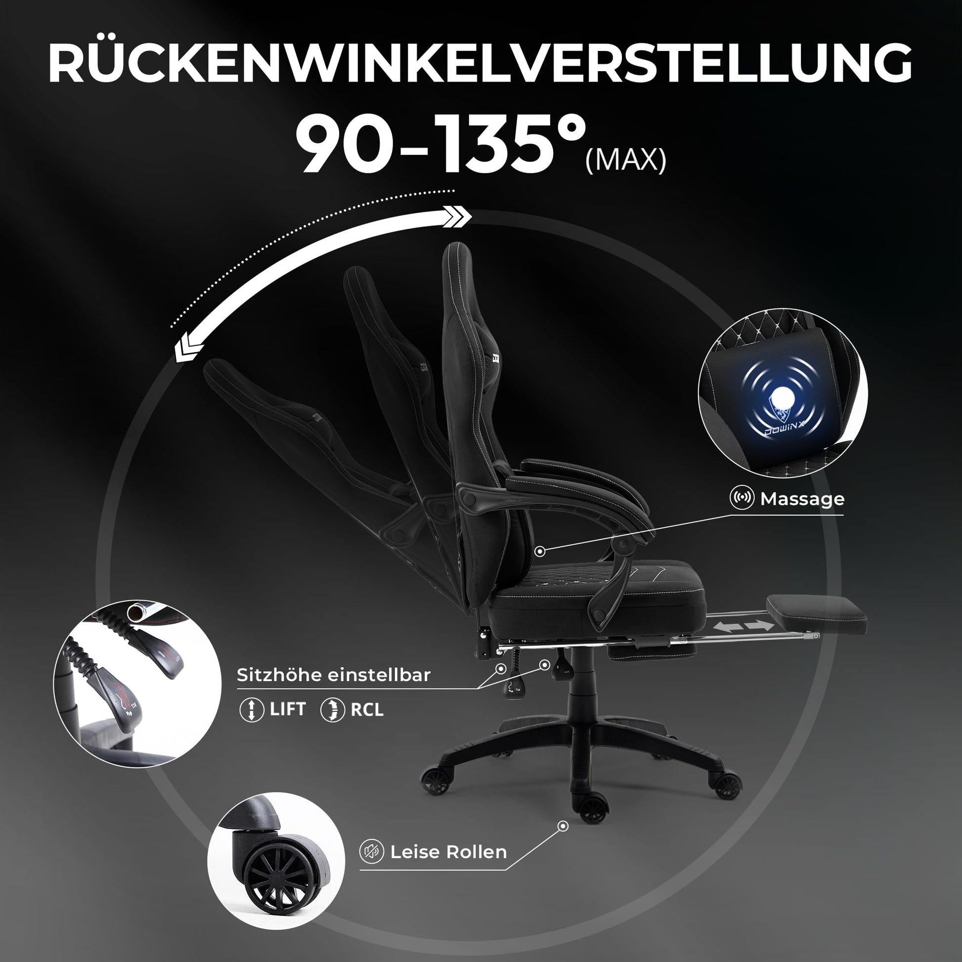 Dowinx Gaming Stuhl Stoff Bürostuhl Massage - Schwarz