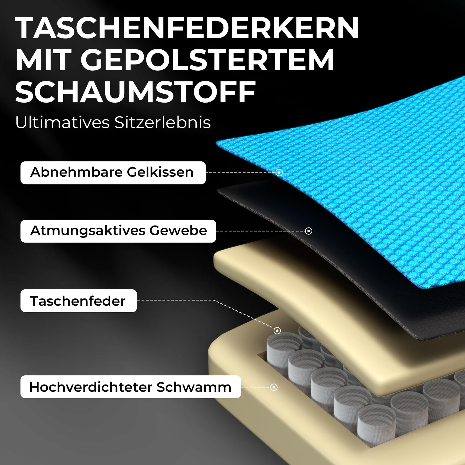 - Überlegener Sitzkomfort: Eine innovative Kombination aus stützenden Taschenfedern und atmungsaktivem Kühlschaum sorgt für eine ideale Druckverteilung und Temperaturregulierung.