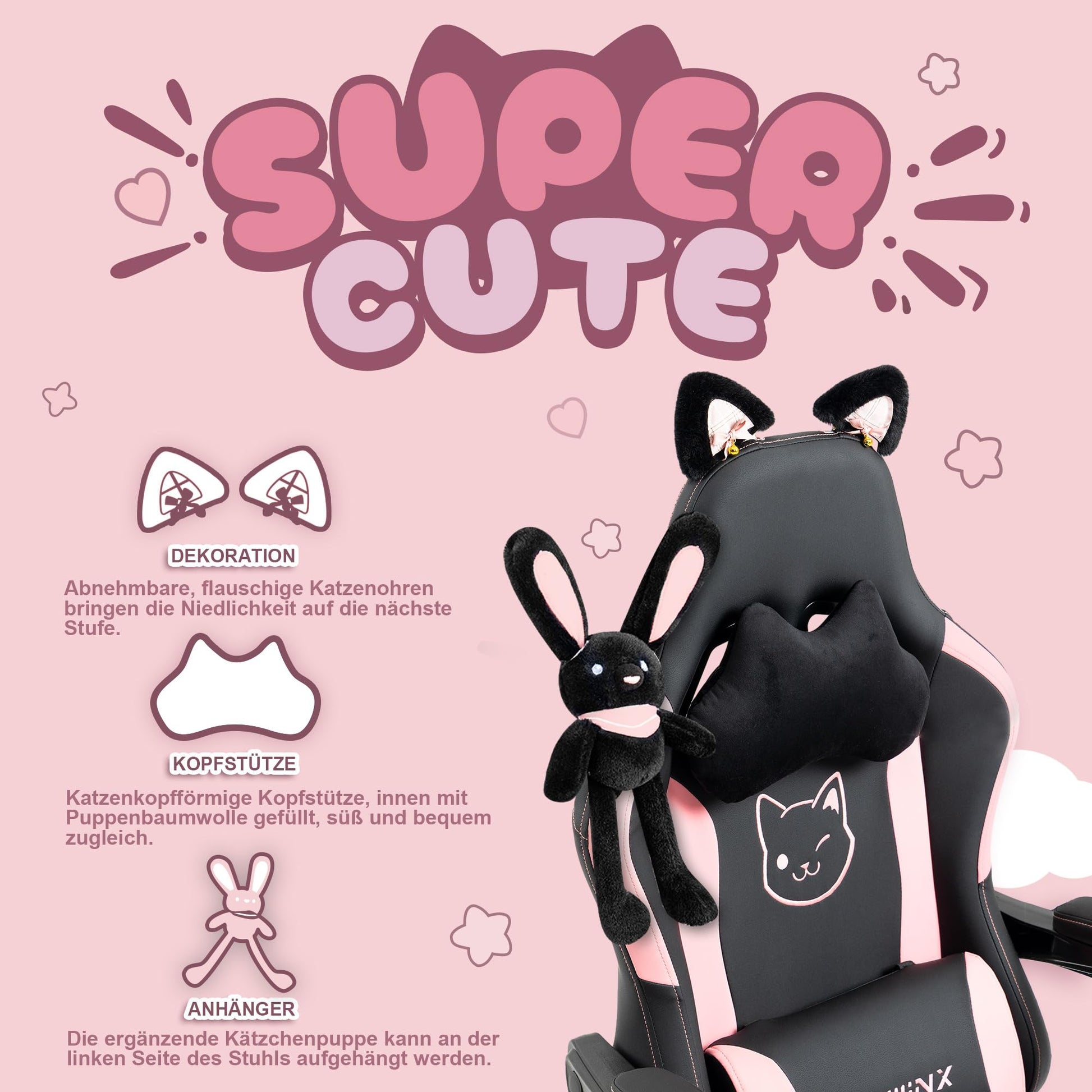 Dowinx Gaming Stuhl Süsse Katze Edition - Ergonomisch Schwarz