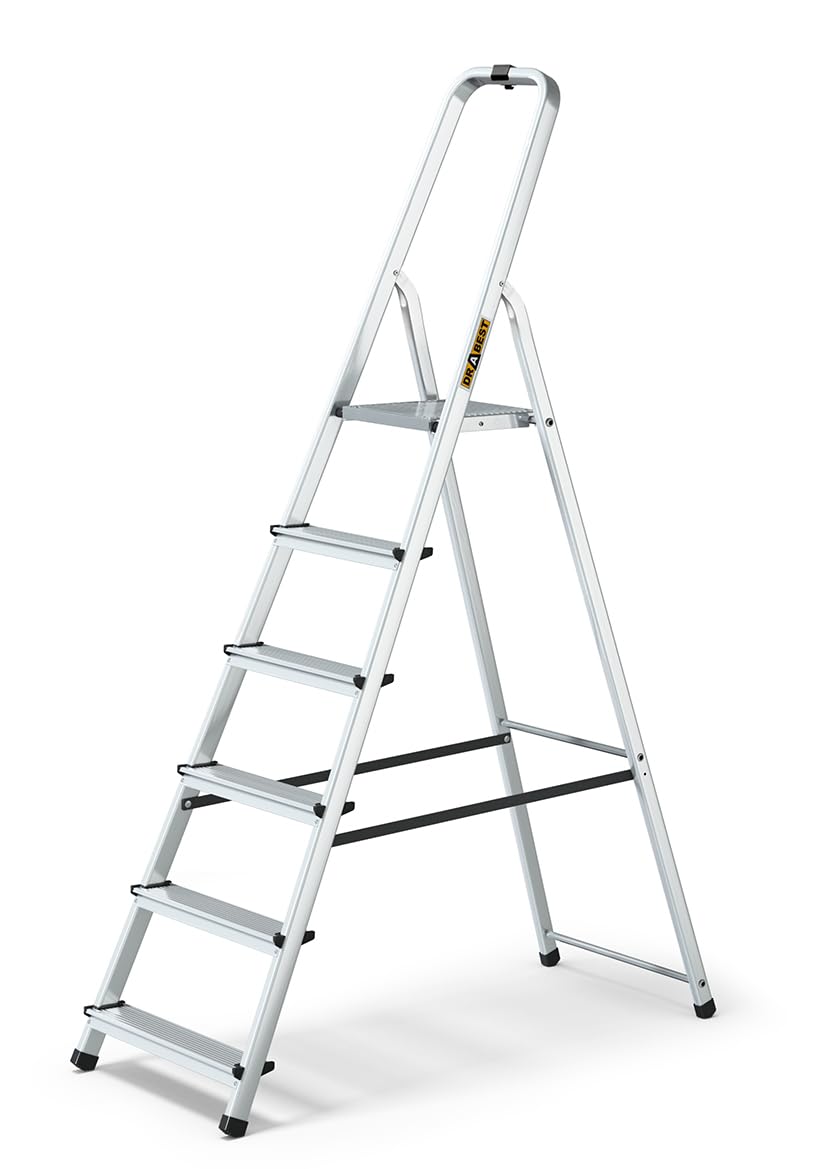 DRABEST Klappbare Alu Trittleiter 6 Stufen - Haushaltsleiter