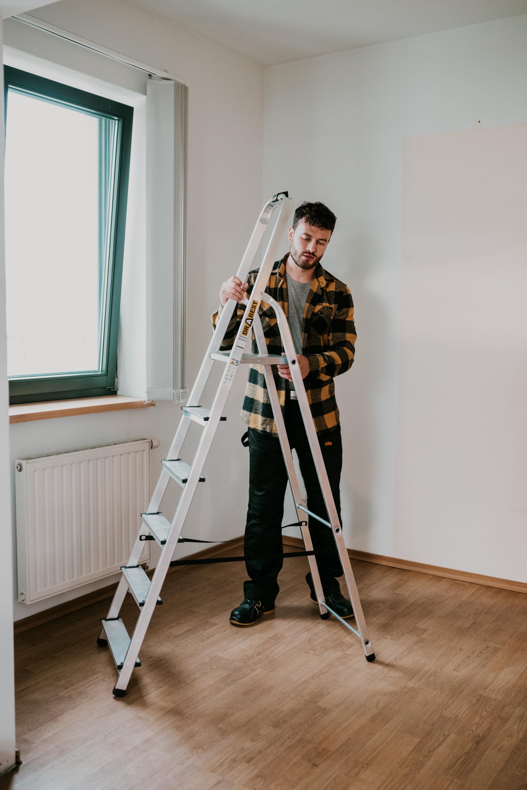 Diese klappbare Trittleiter aus robustem Aluminium ist der ideale und sichere Helfer für alle Arbeiten in der Höhe, sei es im Haushalt oder bei kleineren Renovationsprojekten.