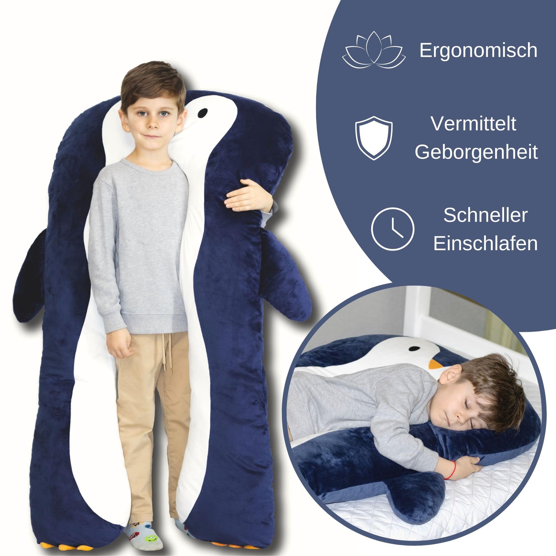 Dieses liebevoll gestaltete Seitenschläferkissen in Pinguin-Form ist der perfekte Begleiter für ruhige Nächte. Es bietet Kindern nicht nur optimalen Komfort, sondern auch ein Gefühl von wohliger Geborgenheit.