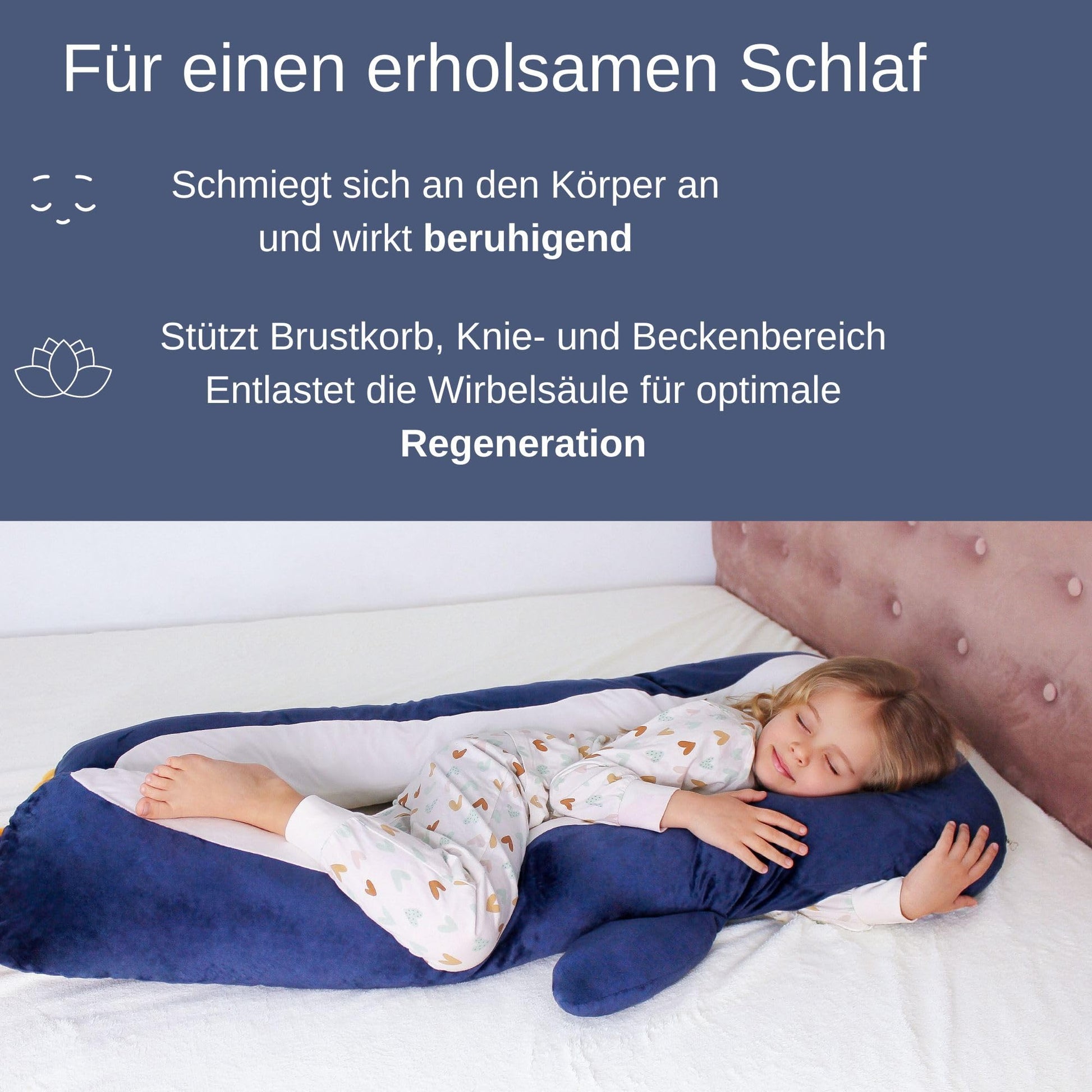 - Ergonomische Form: Speziell entwickelt, um Seitenschläfer optimal zu stützen.