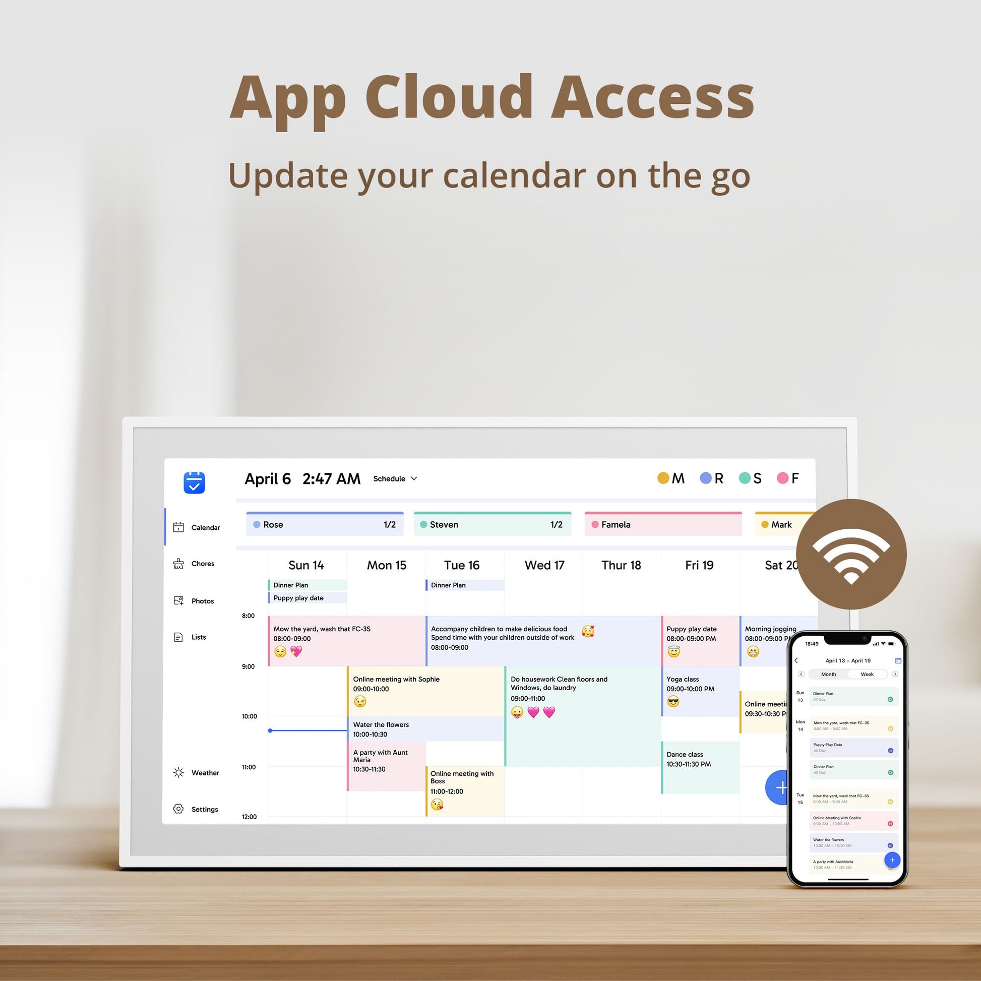Dieser digitale Kalender ist die ultimative Lösung, um die Planung Ihrer Familie zu vereinfachen. Weisen Sie jedem Familienmitglied eine eigene Farbe zu, um Aufgaben, Termine und Pläne übersichtlich zu verfolgen. Dank der einfachen Synchronisation über die App oder direkt am Gerät sind alle stets auf dem gleichen Stand – egal, wo sie sich gerade befinden. Nie war es leichter, den Familienalltag zu koordinieren, Essenspläne zu erstellen oder an wichtige To-dos erinnert zu werden.