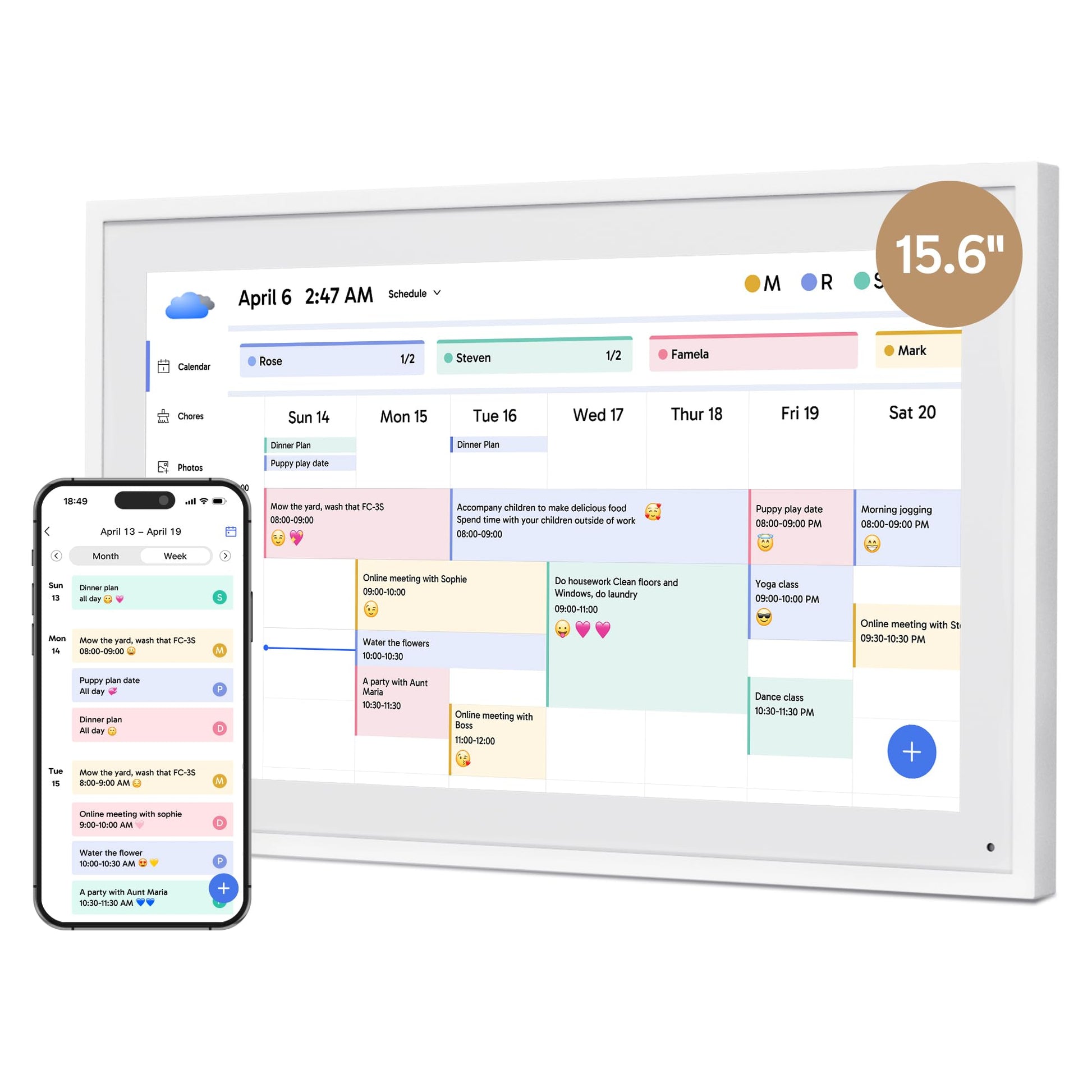 Organisieren Sie Ihren Familienalltag auf elegante Weise mit diesem digitalen Kalender, der als zentraler Planungs-Hub für Ihr Zuhause dient. Er kombiniert Funktionalität mit einem ansprechenden Design und lässt sich flexibel an der Wand montieren oder auf dem Tisch platzieren.