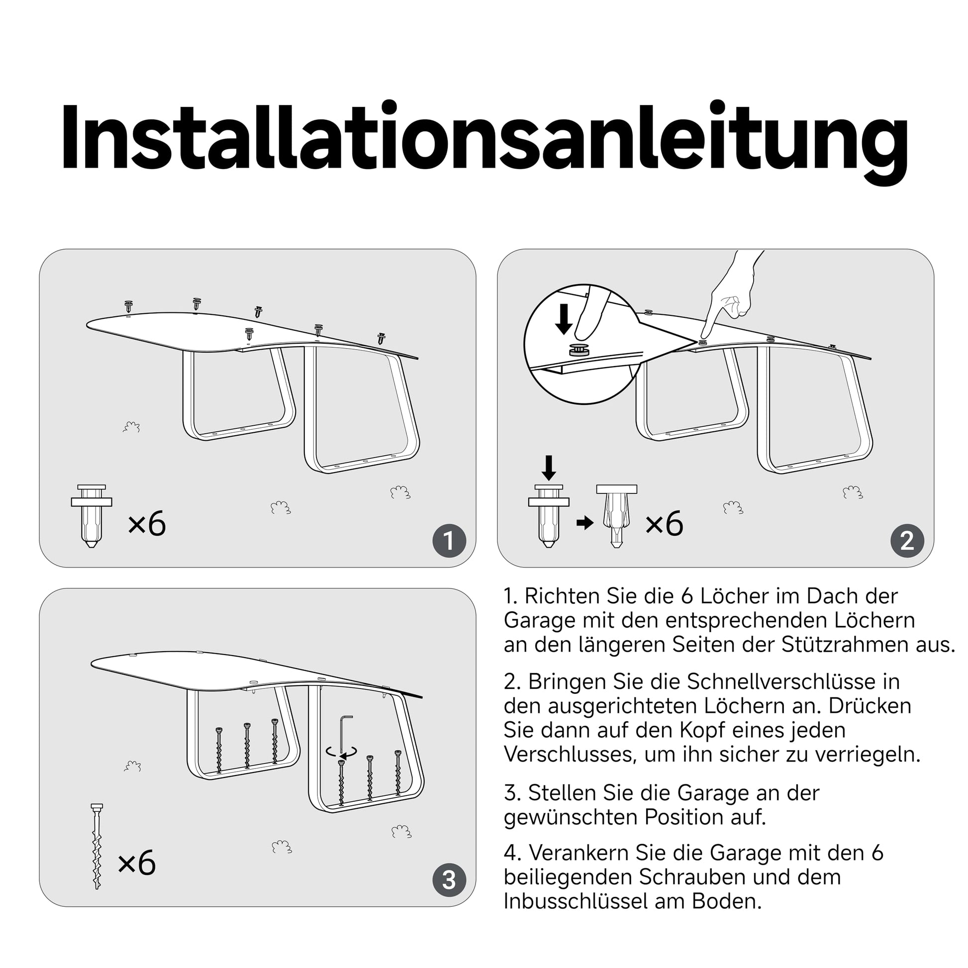 - Unkomplizierte Montage: Dank der klaren Anleitung und des mitgelieferten Zubehörs ist die Garage im Handumdrehen aufgebaut und einsatzbereit.