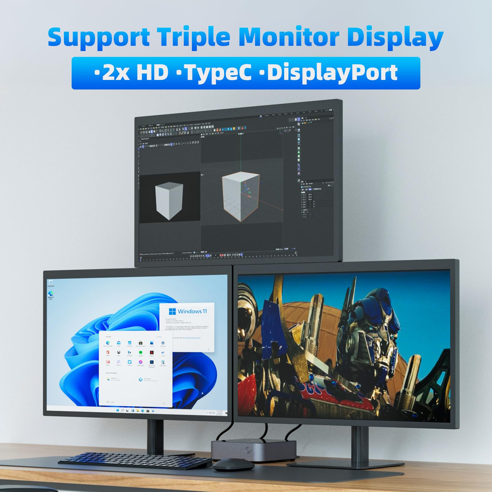 Sie können bis zu drei Monitore gleichzeitig betreiben und so einen äusserst produktiven Arbeitsplatz schaffen. Der Mini PC unterstützt eine gestochen scharfe 4K-Auflösung (3840 x 2160) bei 60 Hz auf allen drei Bildschirmen über die Anschlüsse HDMI, DisplayPort und den vielseitigen USB-C-Port.