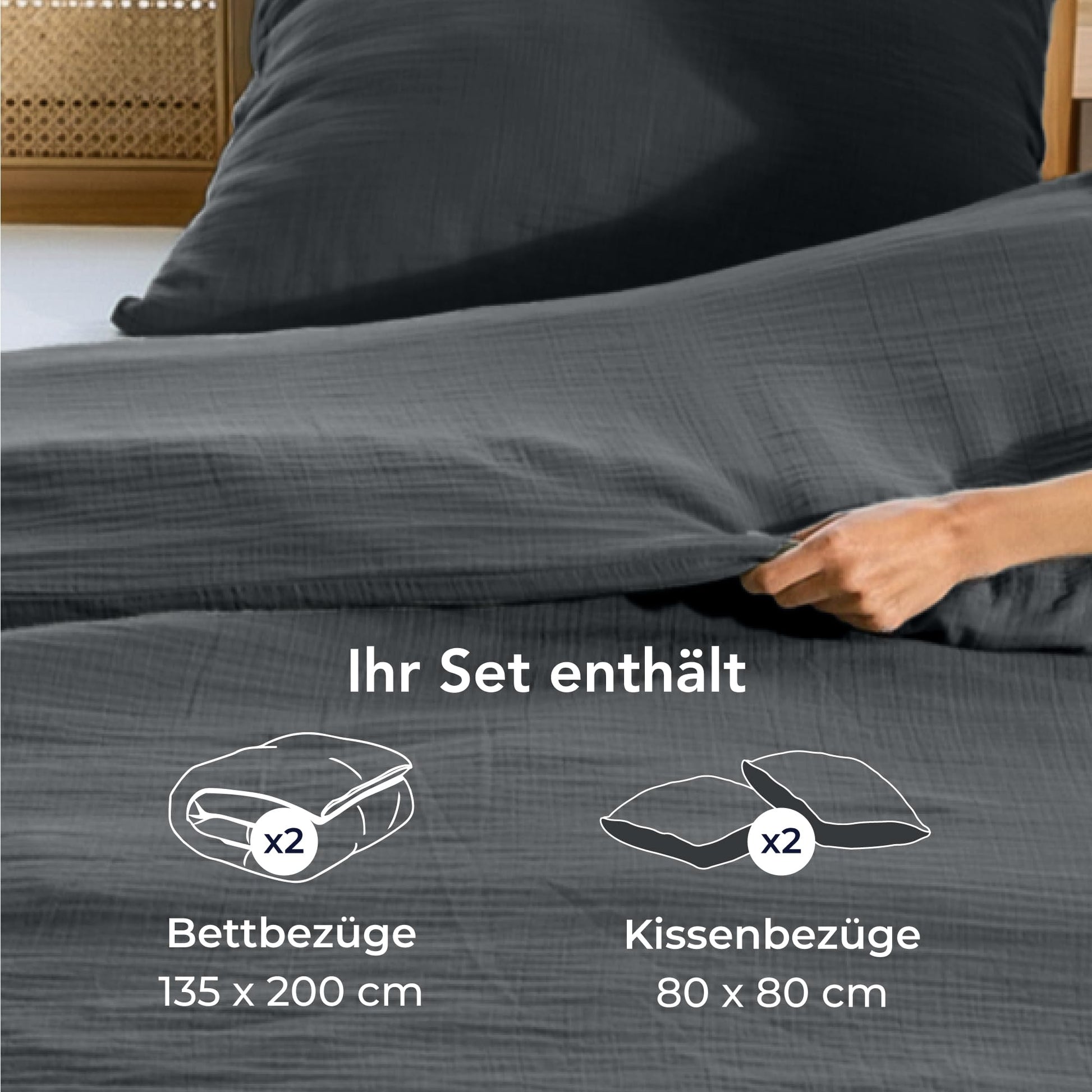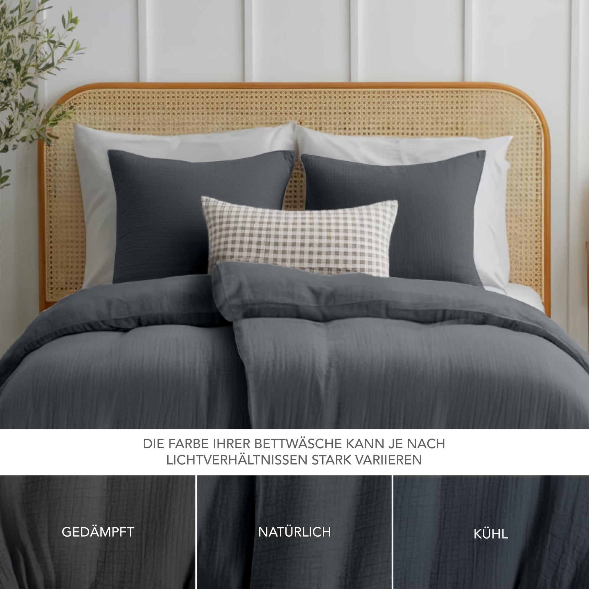 Dreamzie Musselin Bettwäsche 2er-Set 135x200 cm Dunkelgrau