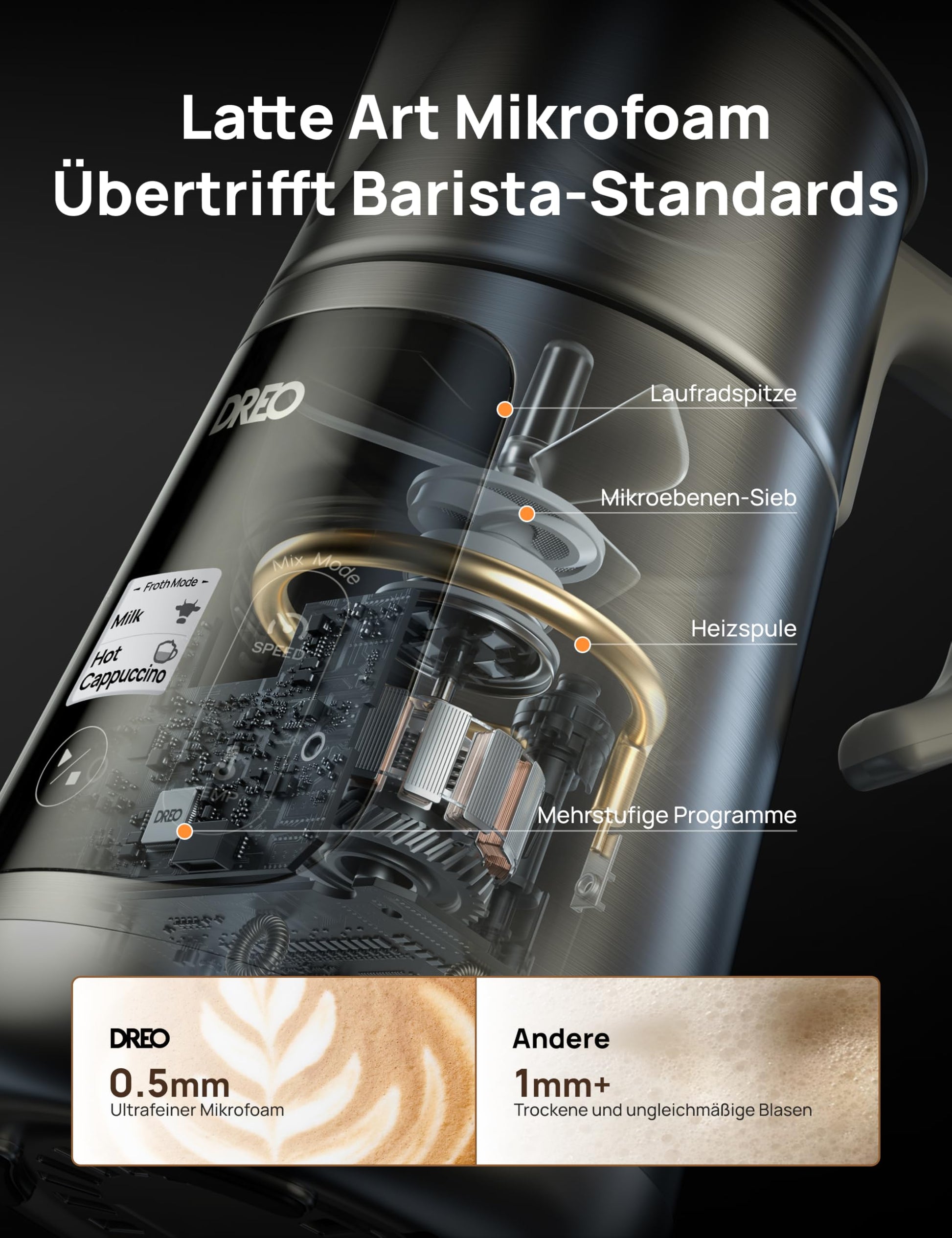 Dreo All-in-1 Milchaufschäumer – 800ml, Mikrofoam, Heiss/Kalt