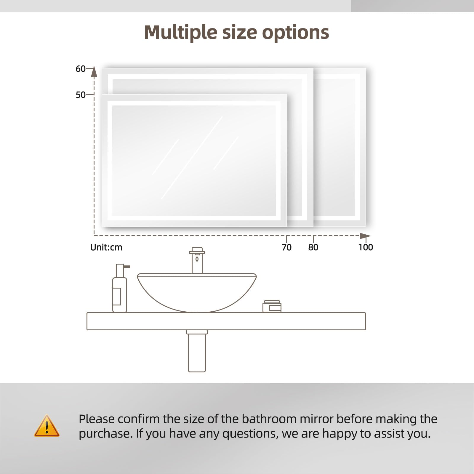 Der Spiegel hat eine integrierte Spiegelheizung, die als Anti-Beschlag-Funktion dient. Sie müssen diese nicht separat aktivieren – sie schaltet sich automatisch zusammen mit der LED-Beleuchtung ein und sorgt so nach dem Duschen schnell für eine klare Sicht.