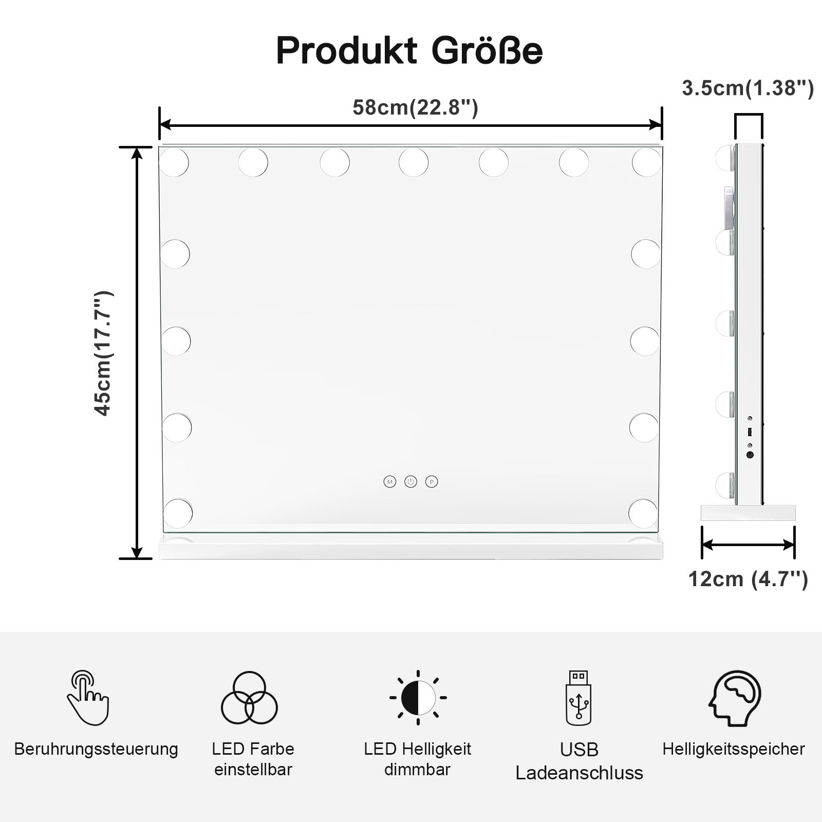 Dripex Hollywood Schminktischspiegel 15 Lichter Touch 58x45 cm Weiss
