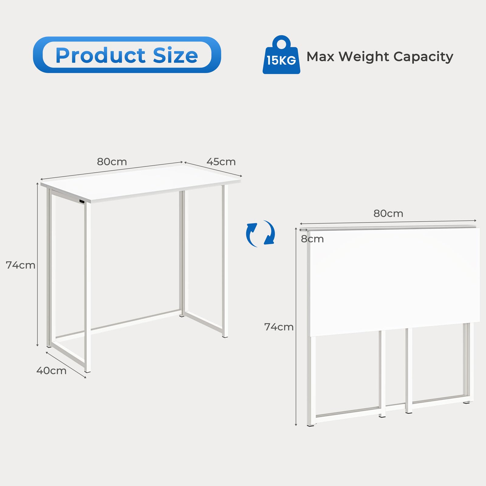Zusammengeklappt ist der Schreibtisch mit nur 8 cm Dicke extrem flach. Dank der Masse von 80 x 8 x 74 cm können Sie ihn mühelos unter dem Bett, hinter einer Tür oder in einer schmalen Nische platzsparend verstauen.