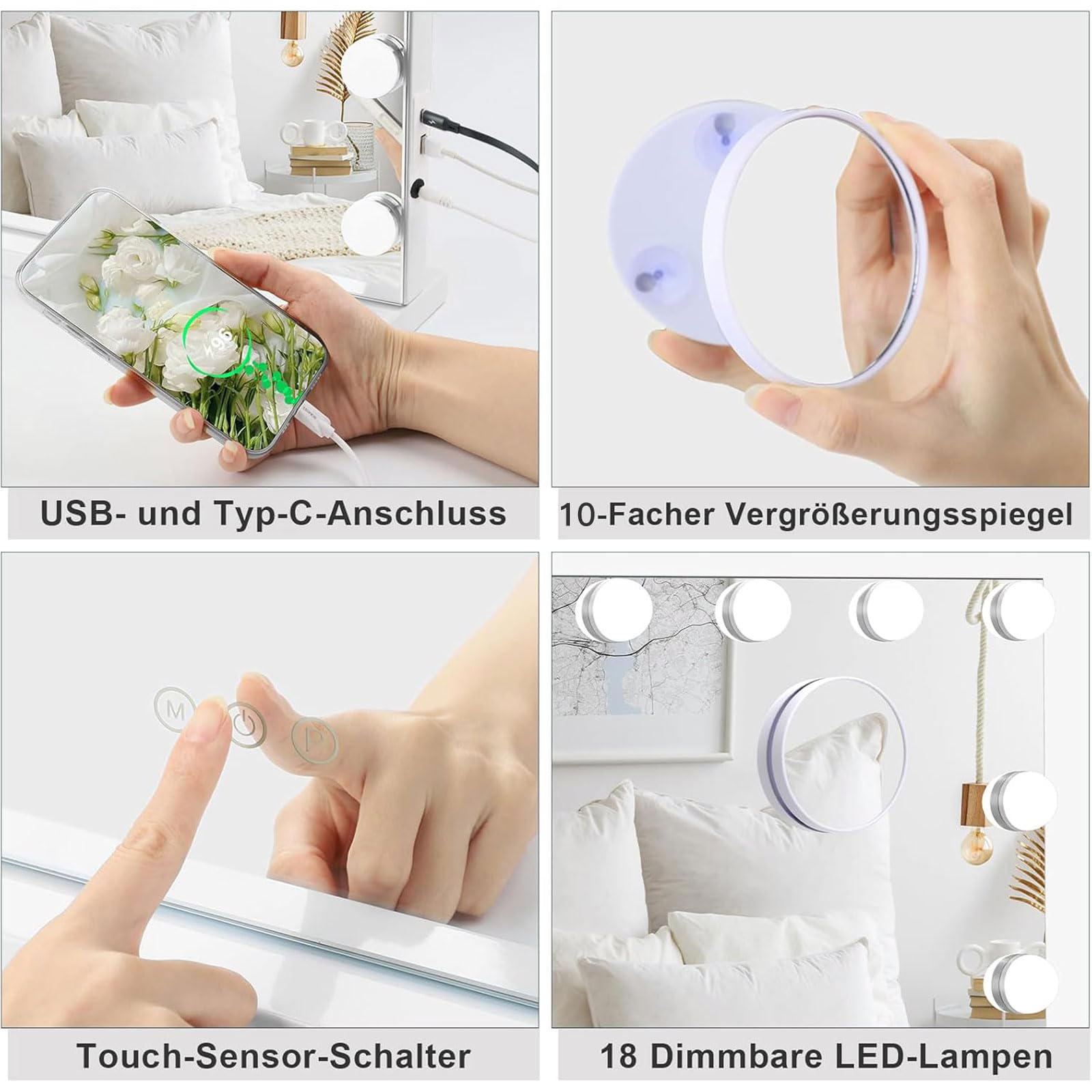 Dripex Hollywood Schminktischspiegel Beleuchtung – 80x60 cm Weiss