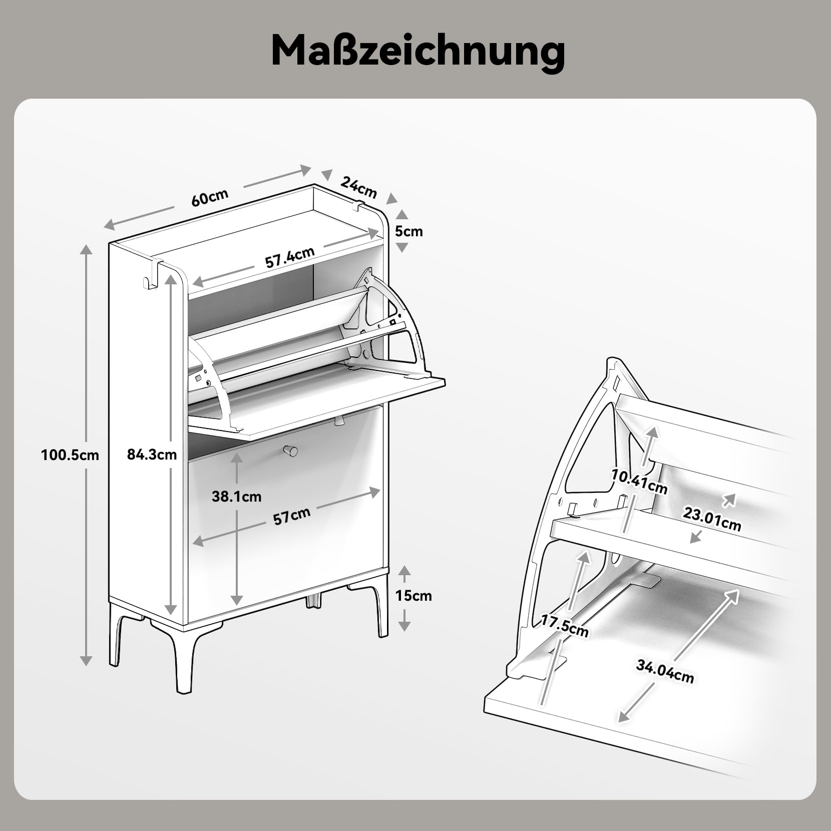- Grosszügiger Stauraum: Zwei doppellagige Kipp-Schubladen bieten Platz für bis zu 32 Paar Schuhe.