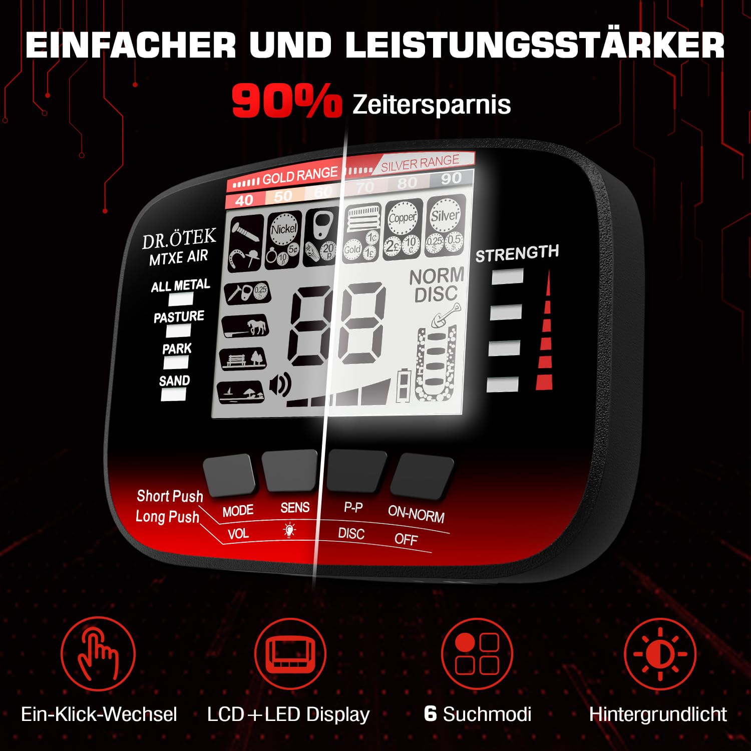 DR.ÖTEK Metalldetektor Profi Set 6 Modi Wasserdicht - Rot