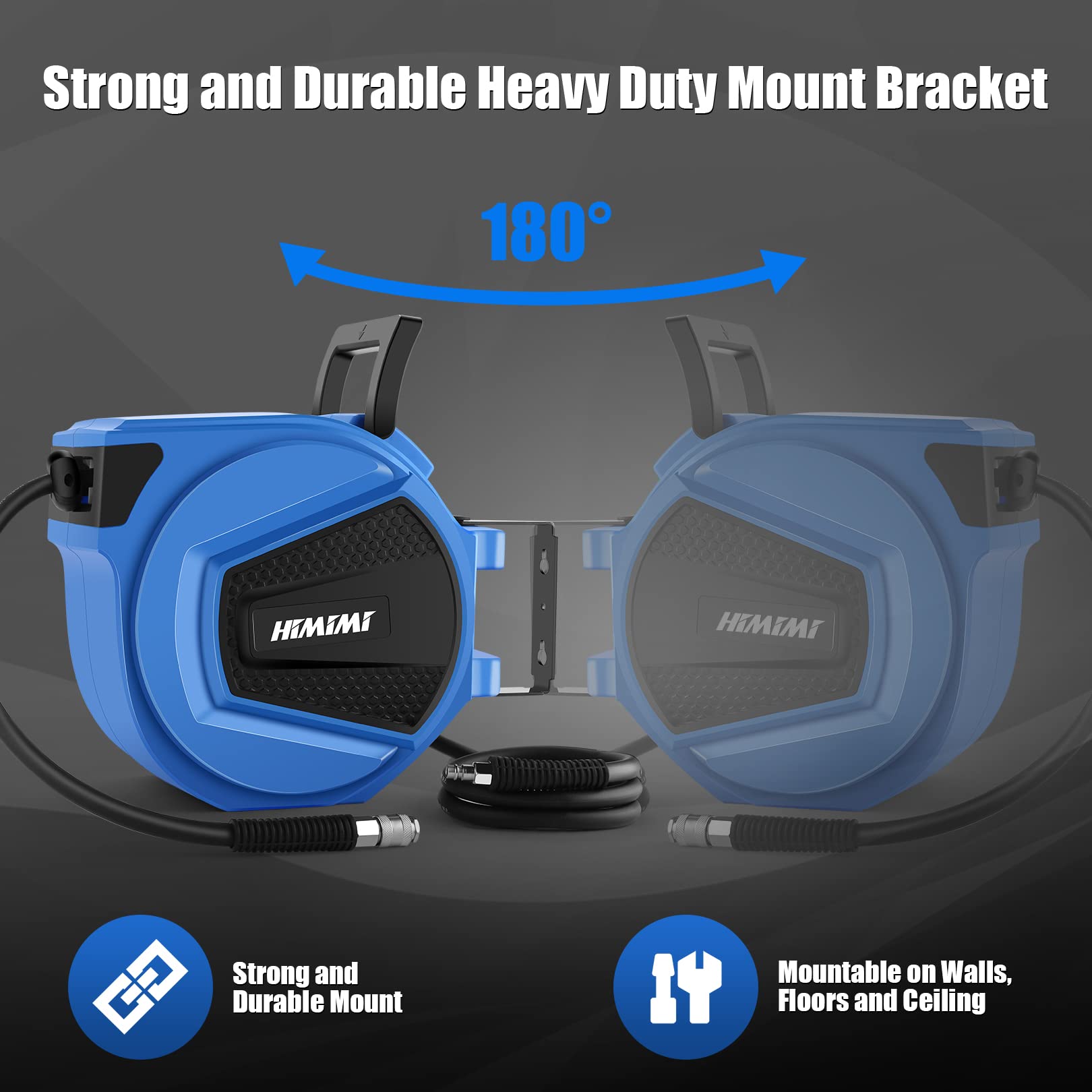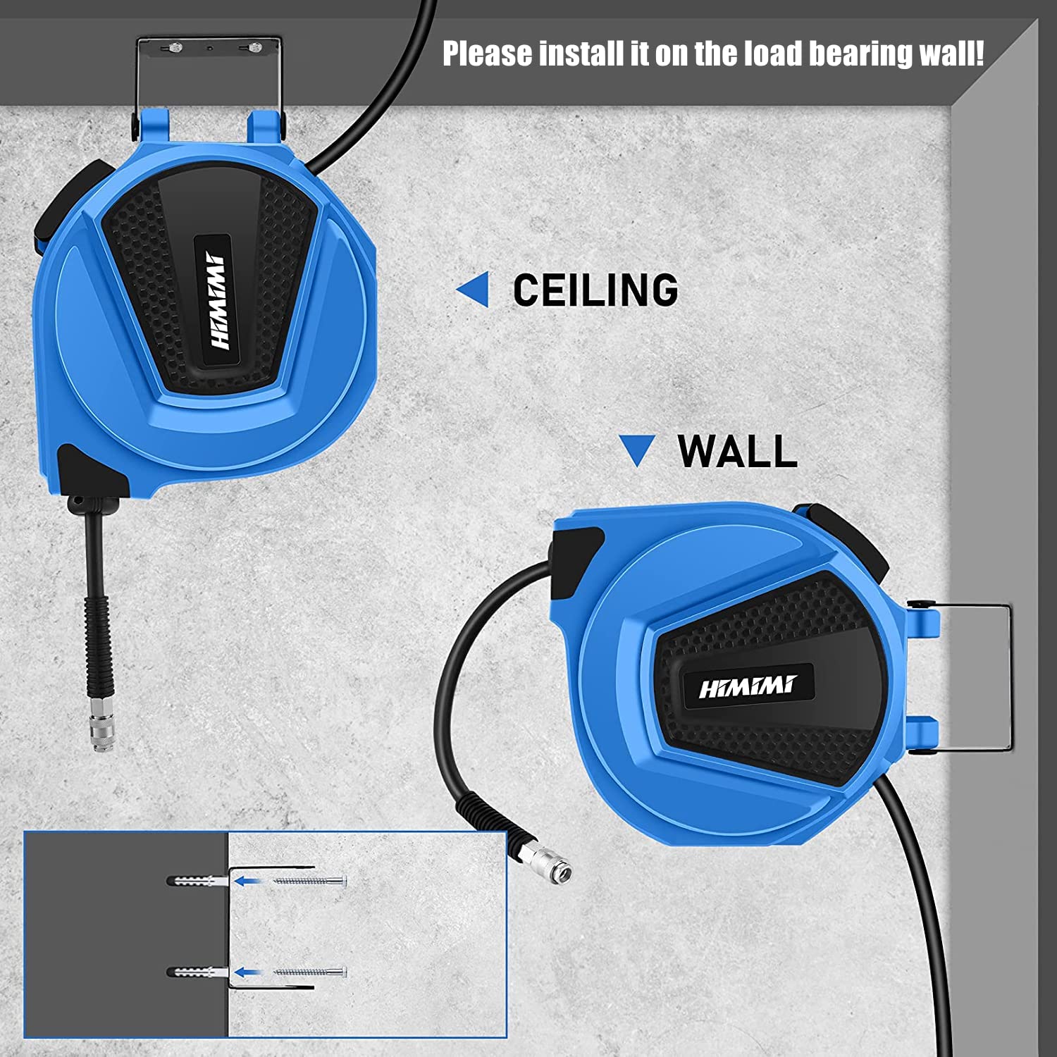 Die mitgelieferte Halterung ist um 180 Grad schwenkbar und lässt sich einfach an einer Wand oder Decke befestigen. Dies sorgt für maximale Flexibilität und eine grosse Reichweite in Ihrem Arbeitsbereich, ohne dass der Schlauch abknickt.