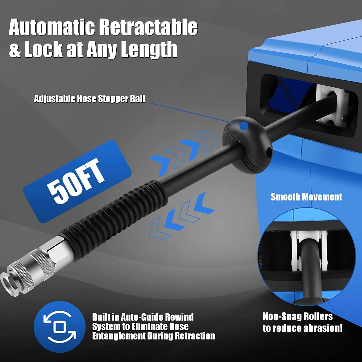 Bringen Sie Ordnung und Effizienz in Ihre Werkstatt oder Garage mit dieser automatischen Druckluftschlauch-Trommel. Sie kombiniert ein robustes Design mit cleverer Funktionalität für ein reibungsloses und sicheres Arbeiten.