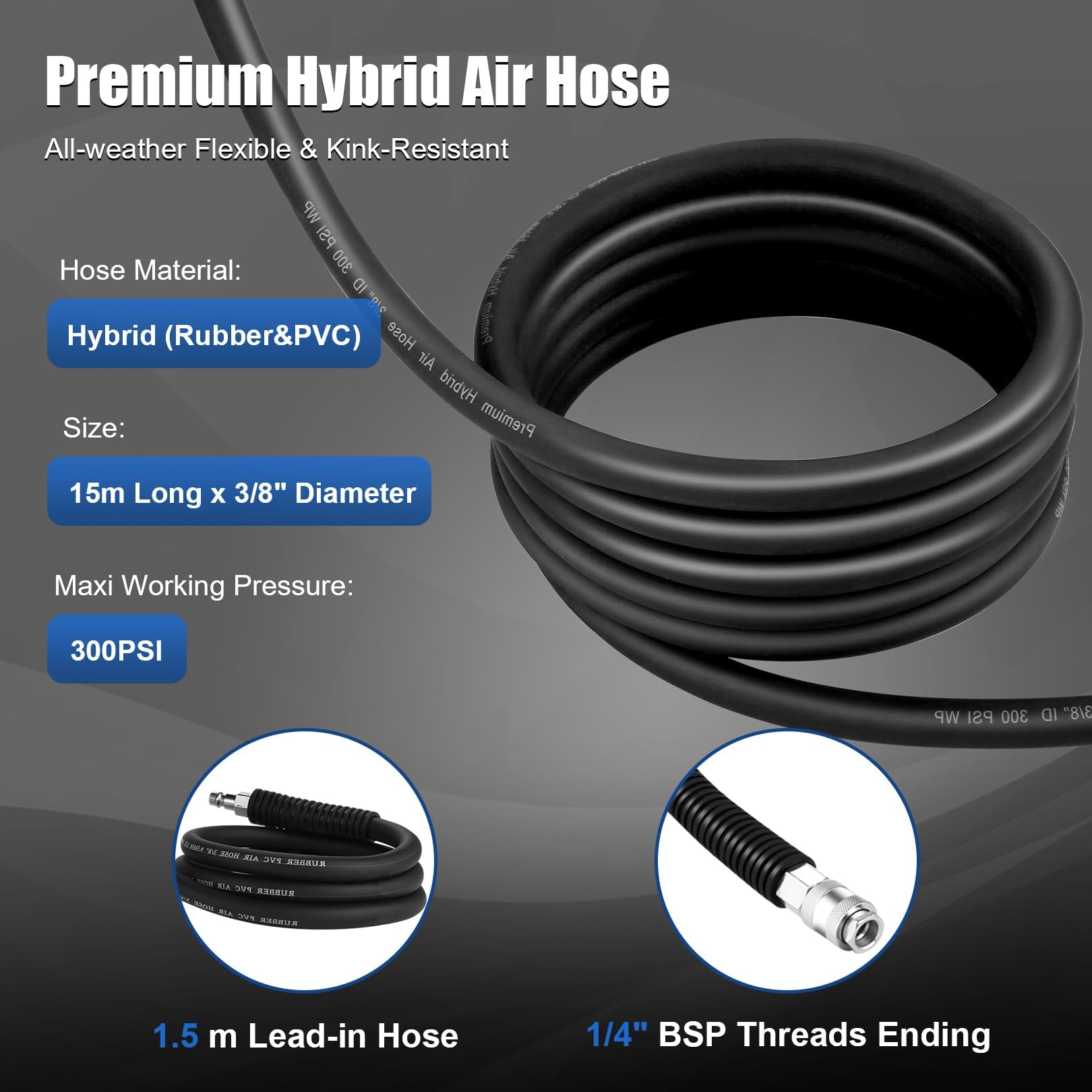 Der hochwertige, dreischichtige Hybrid-Schlauch ist äusserst widerstandsfähig gegen Abrieb, Knicke und Durchstiche. Er bleibt selbst bei extremen Temperaturen von -40 °C bis +60 °C flexibel und zuverlässig dicht, ohne seine Form zu verlieren.