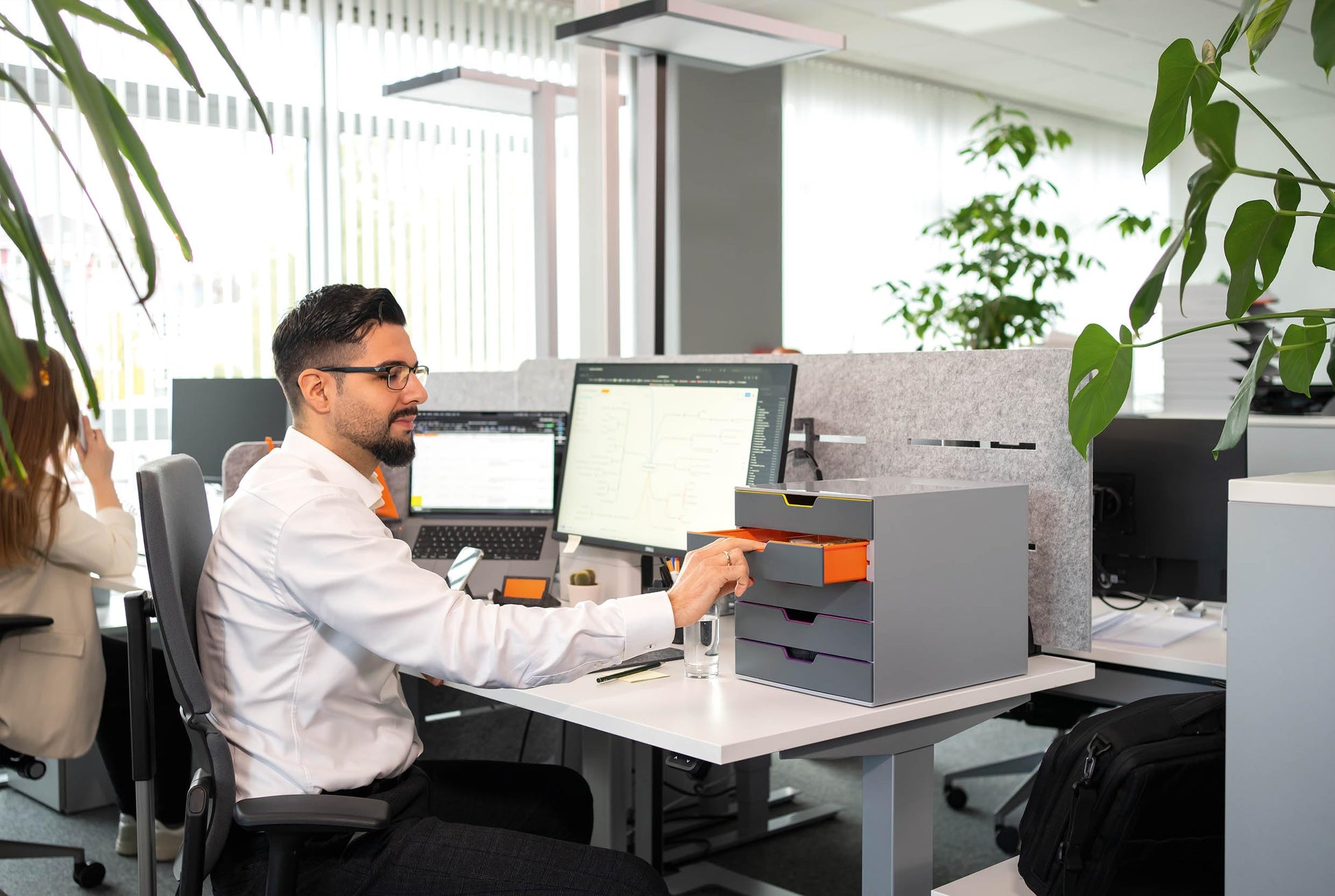 Bringen Sie mit dieser hochwertigen Schubladenbox System und Farbe in Ihr Büro. Sie ist die ideale Lösung, um Dokumente übersichtlich und griffbereit aufzubewahren und passt dank ihres Designs auf jeden Schreibtisch oder in jedes Standard-Büromöbel.