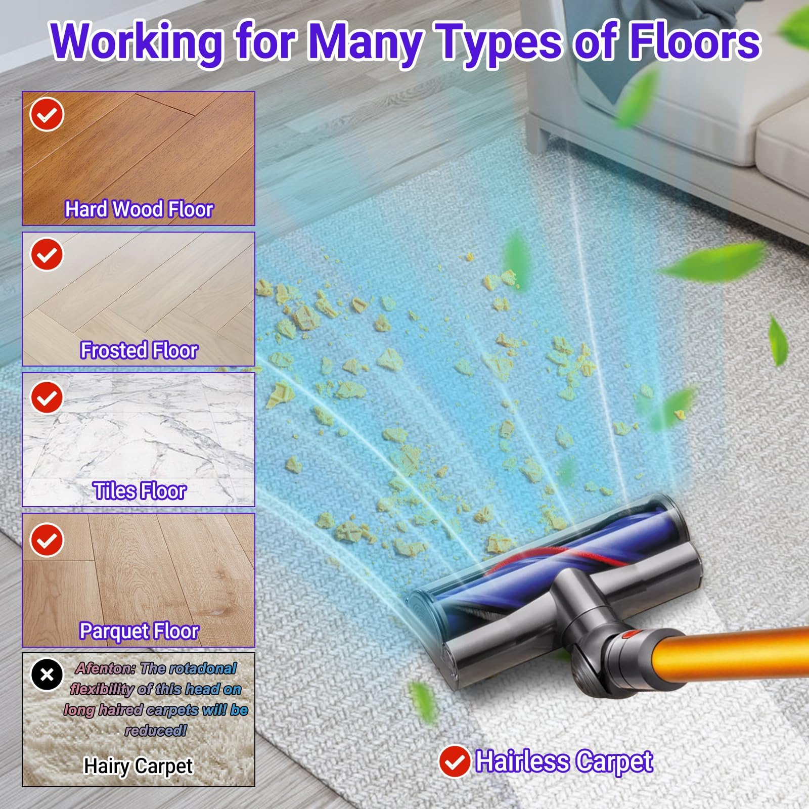 - Kompatibilität: Dieser Bürstenkopf ist passend für die Dyson Modelle V7, V8, V10, V11 und V15 (sowie SV12, SV14, SV15). Bitte beachten Sie, dass er nicht mit der V6-, DC- oder Dyson Slim-Serie kompatibel ist.