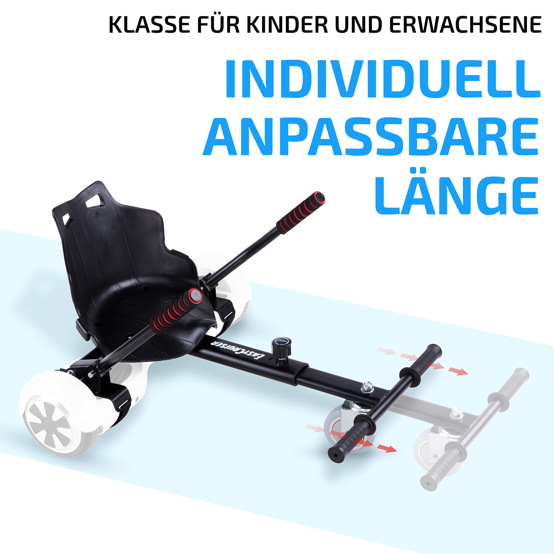 Verwandeln Sie Ihr Hoverboard in ein aufregendes Go-Kart! Mit dieser Kart-Erweiterung erleben Sie ein völlig neues, sicheres und actiongeladenes Fahrgefühl.