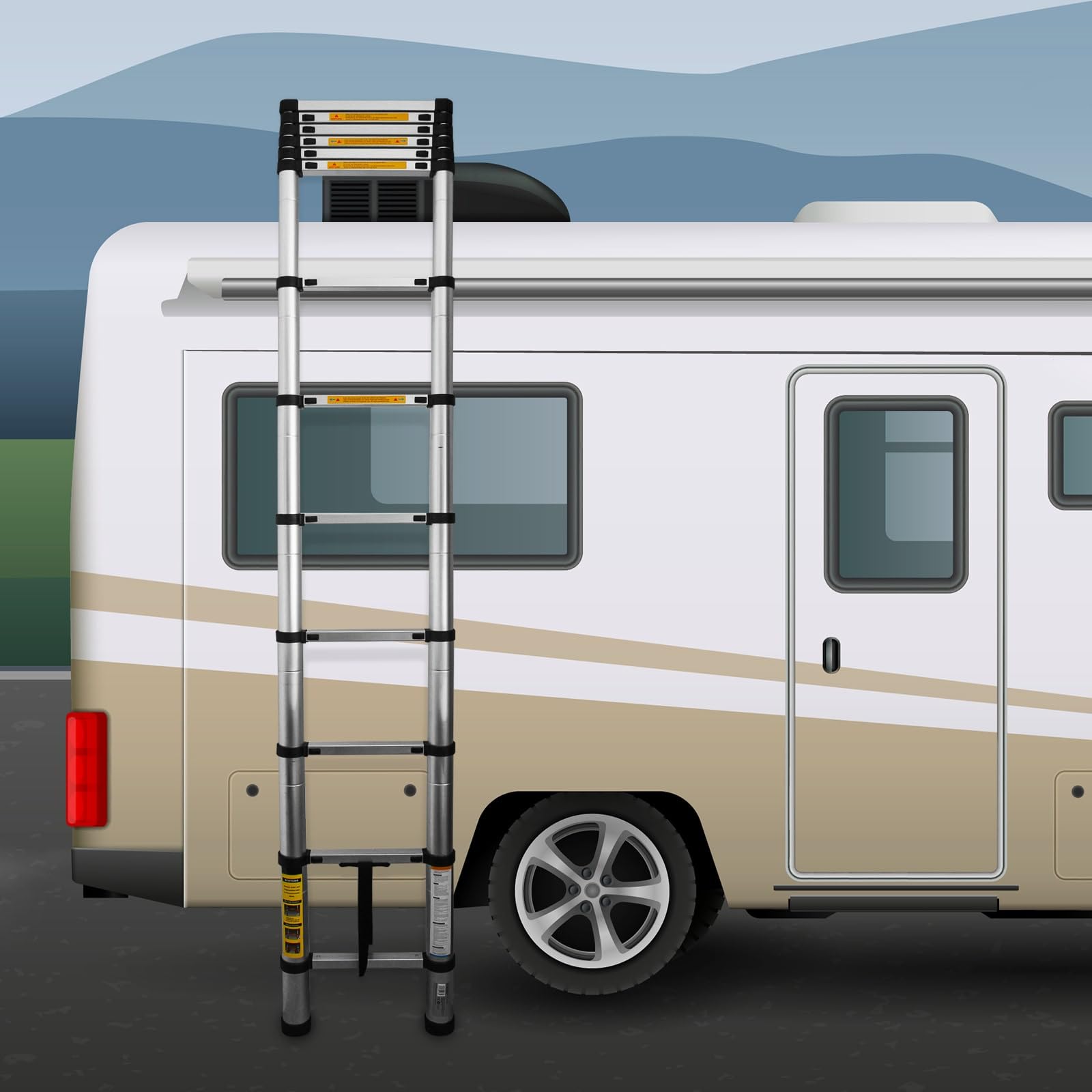 - Flexible Höhenanpassung: Mit 13 Sprossen, die dank einer Sicherheitsverriegelung einzeln justiert werden können, erreichen Sie eine maximale Arbeitshöhe von bis zu 3,80 Metern.