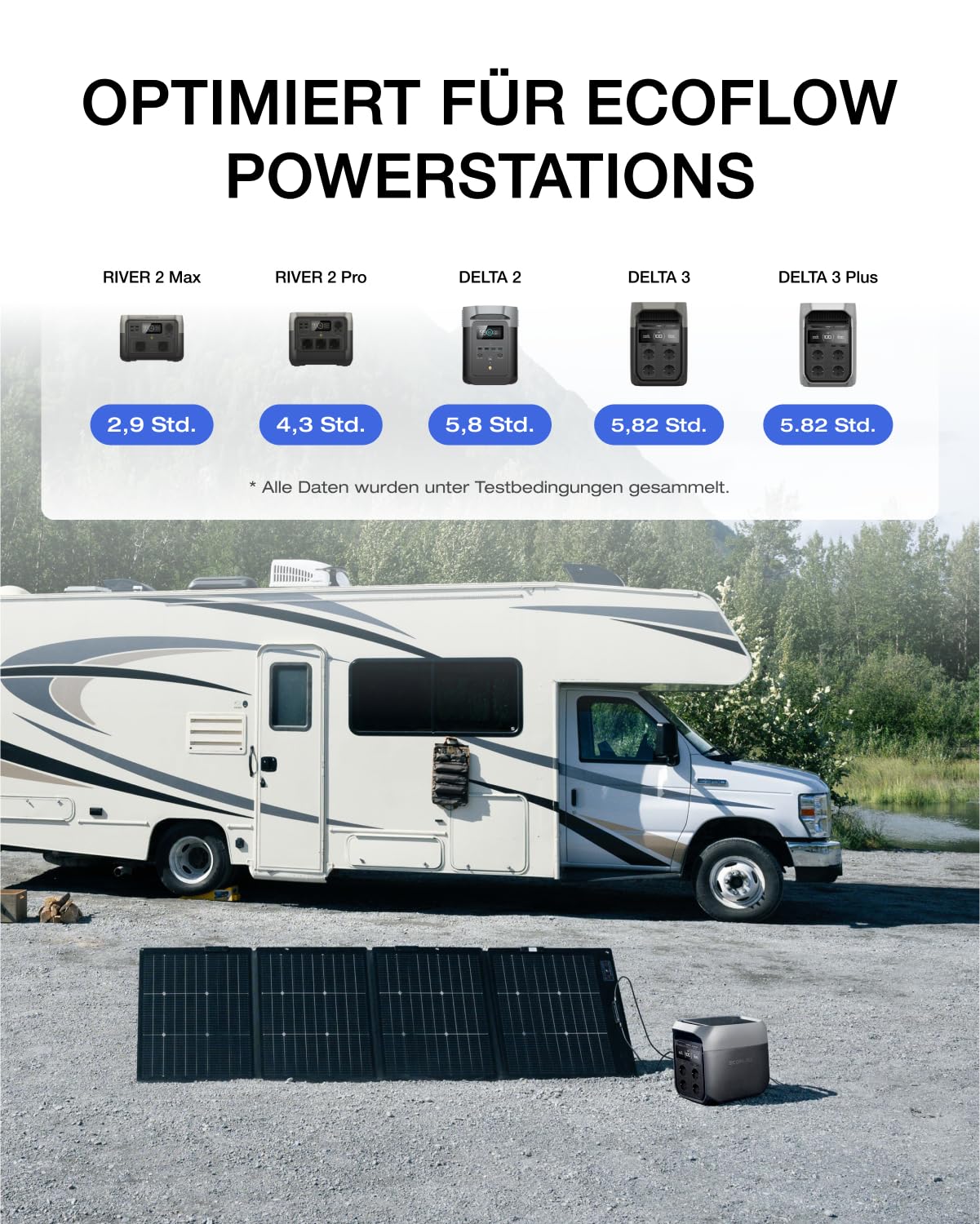 Das Solarpanel ist dank seines universellen MC4-Solaranschlusses mit allen EcoFlow Powerstations der DELTA und RIVER Serien sowie mit vielen Geräten anderer Hersteller kompatibel, die diesen Standard unterstützen.