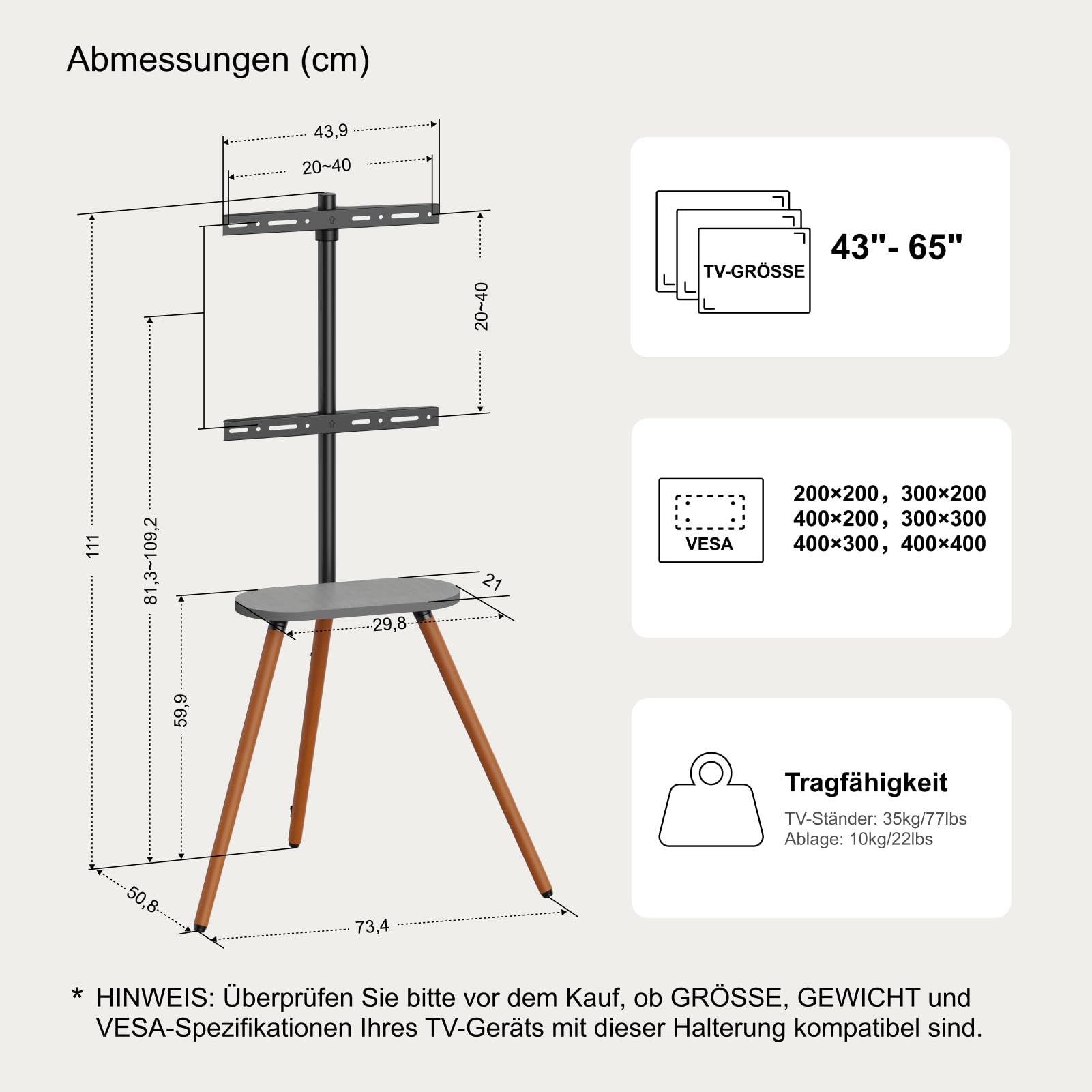 - Belastbarkeit: Trägt Fernseher bis zu einem Gewicht von 35 kg sicher und stabil.