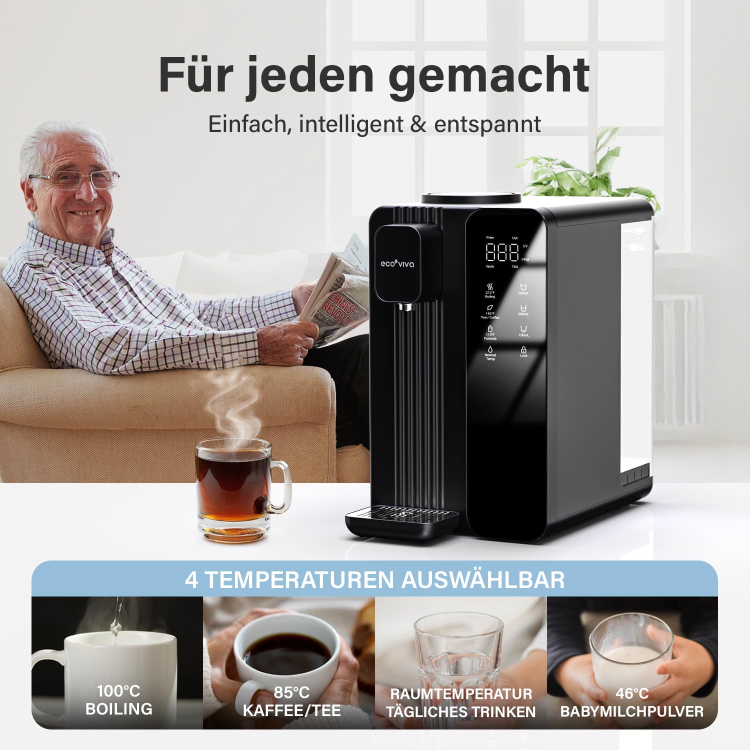 Ecoviva UV Auftisch Umkehrosmose Wasserfilter Heisswasserspender - Schwarz