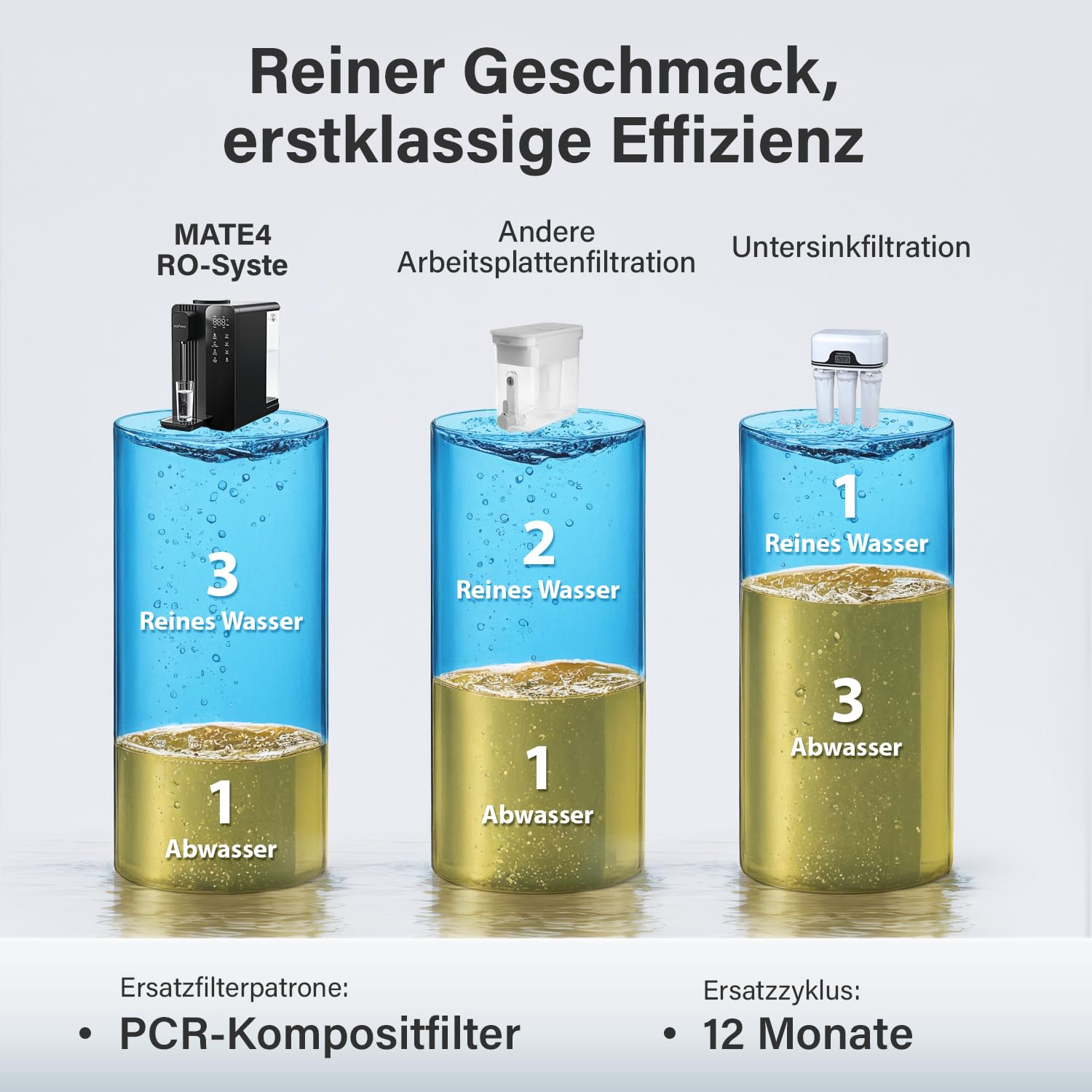 - Zertifizierte Filterleistung: Entfernt bis zu 99,99 % aller Schadstoffe wie PFOA, PFOS, PFAS, Schwermetalle (Blei, Arsen), Chlor und Nitrate, geprüft durch SGS und zertifiziert nach NSF/ANSI 58.