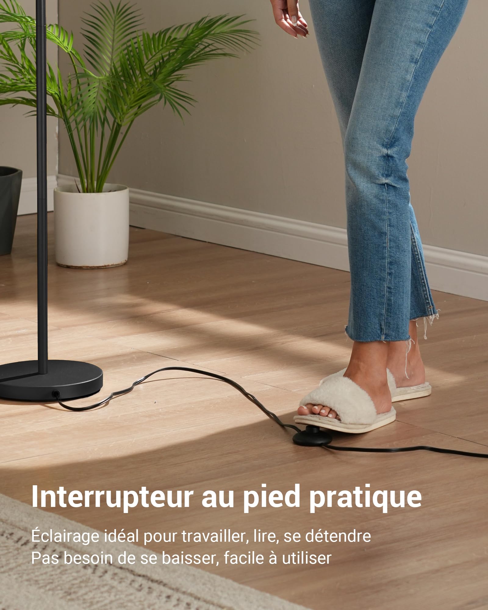 Die Montage gestaltet sich denkbar einfach und kommt ganz ohne Werkzeug aus. Sie können die Lampe mühelos alleine aufbauen. Der praktische Fussschalter ermöglicht ein bequemes Ein- und Ausschalten, ohne dass Sie sich bücken müssen – ein grosser Vorteil im Alltag.