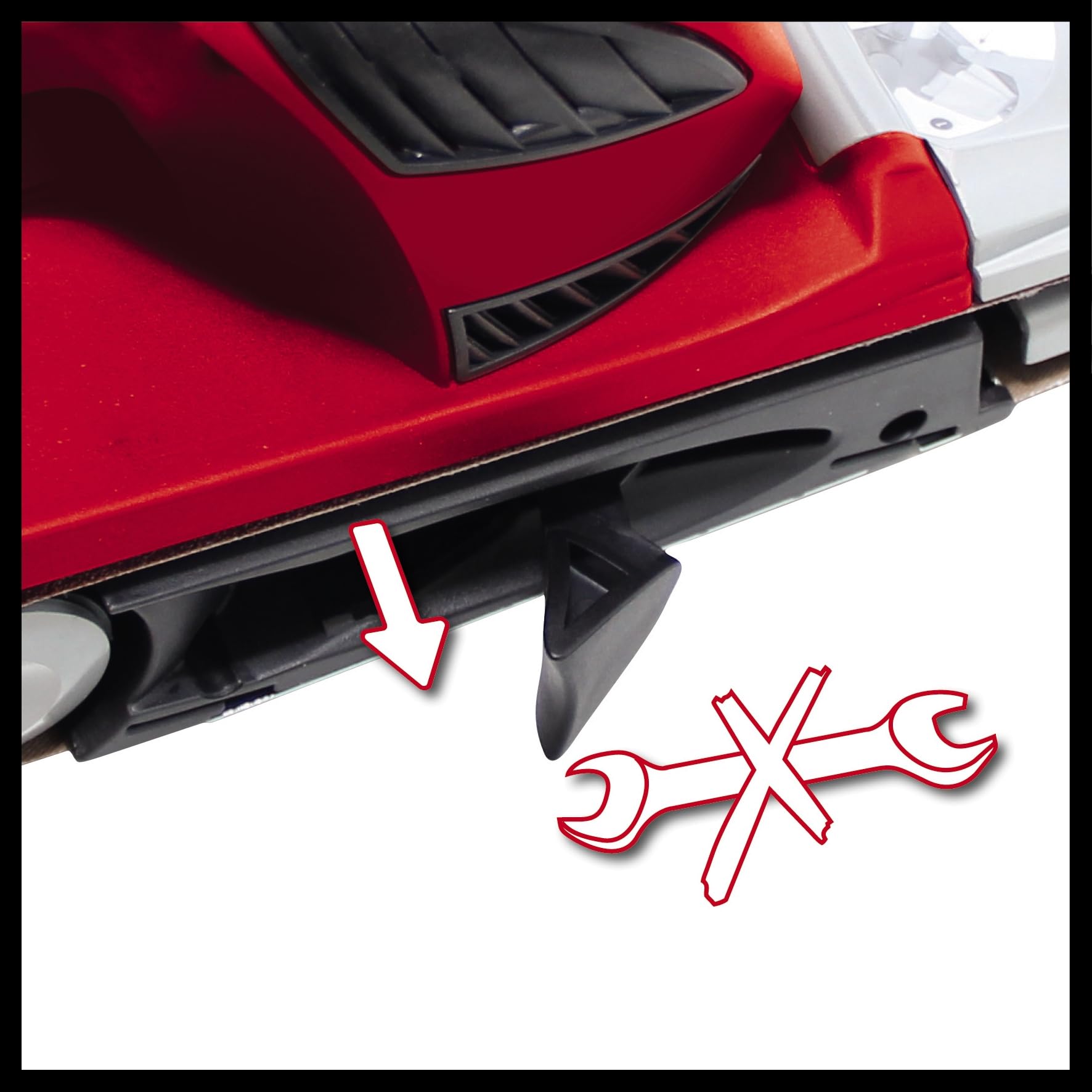 Sehr gut. Dank der hochklappbaren Frontabdeckung können Sie mit dem TE-BS 8540 E mühelos und präzise bis an Kanten und in schwer zugängliche Ecken schleifen. Dieses Merkmal macht ihn besonders flexibel für detaillierte Arbeiten.
